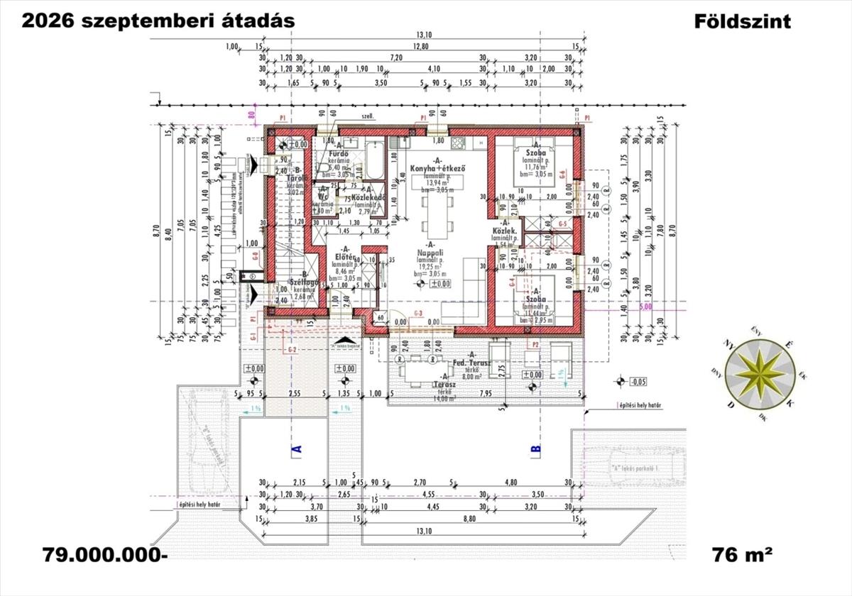 • 169 m²-es saját kertrész, továbbá egy kocsibeálló, amely megkönnyíti a PARKOLÁST.