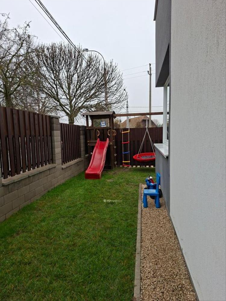 - a kertben, 50 nm-es modern, fából készült játszótér (mászóka, csúszda, hinta), valamint kerti tároló a szerszámoknak.