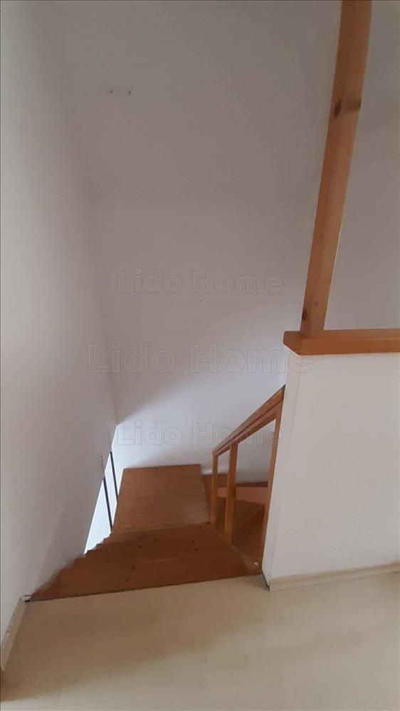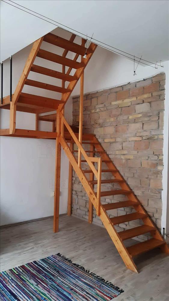 Az alsó szinten található a konyha, étkező és nappali egy légtérben, fürdőszoba.