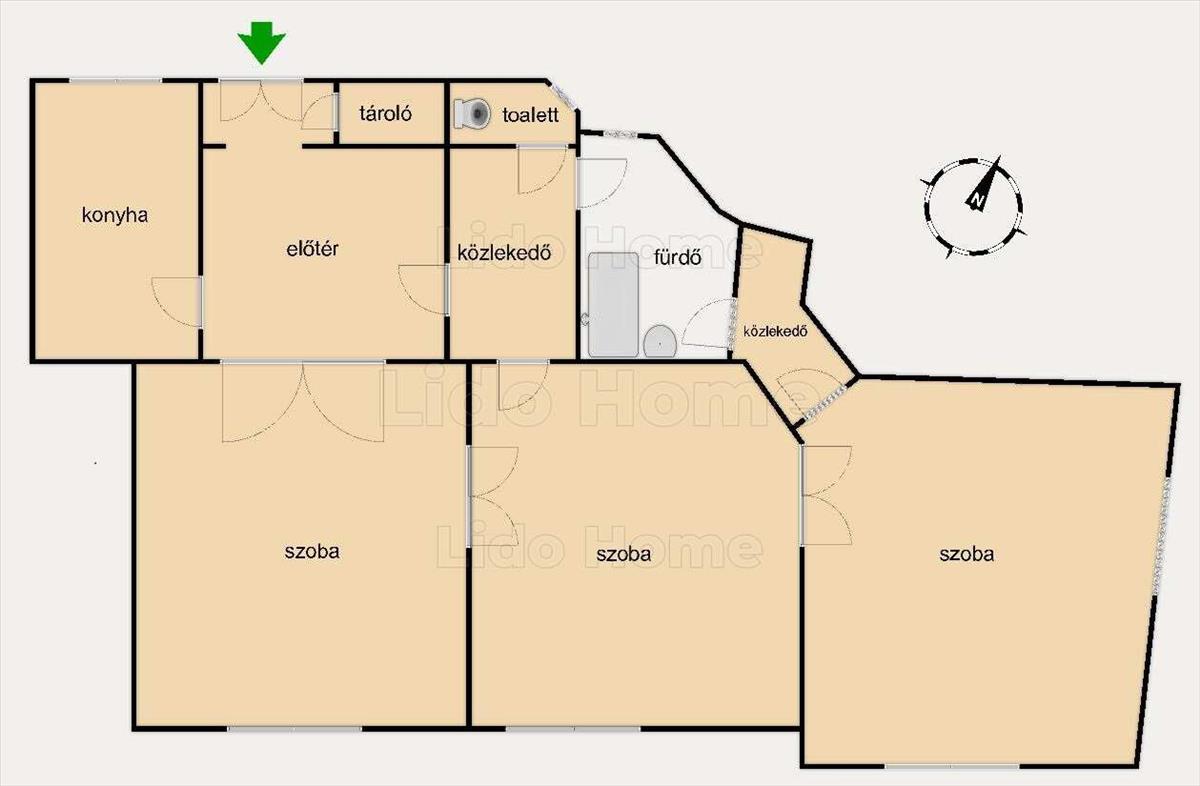 Kisebb változtatásokkal lehetséges több szoba kialakítása, a jelenlegi szoba bejáratok is jól variálhatók.