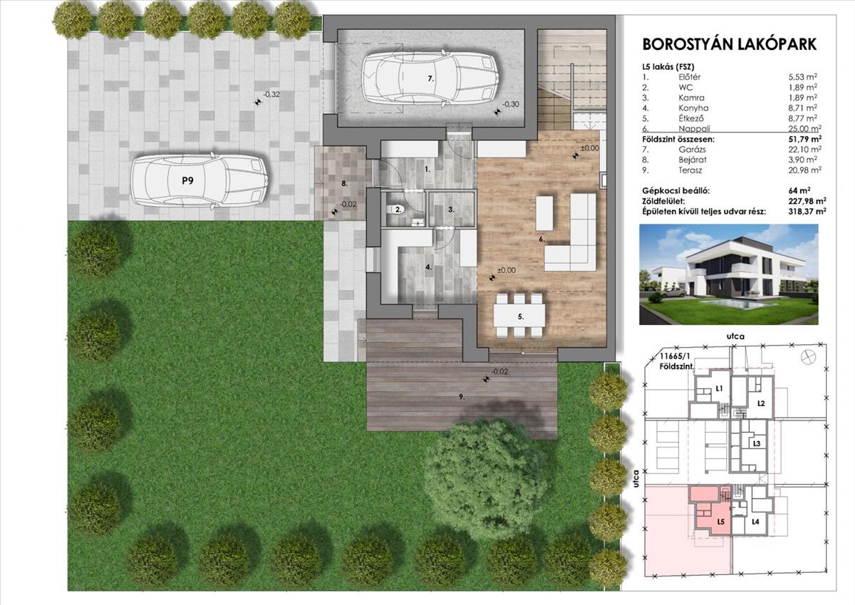 Győr-Révfaluban, a Bálványosi csatorna szomszédságában, 8 lakásból álló társasházban kétszintes, 128, 95 m2-es, 3 hálószobával, gardróbbal, tágas nappali + konyha + étkező kialakítással, kamrával, különálló fürdőszobával és toalettel, két erkéllyel, egy 20, 98 m2-es terasszal és egy saját 318, 37 m2 udvarrésszel rendelkező, prémium minőségű, új építésű lakás eladó.Az ingatlan kiváló lokalitással rendelkezik, a belvároshoz közel, de mégis nyugodt kertvárosias környezetben helyezkedik el.