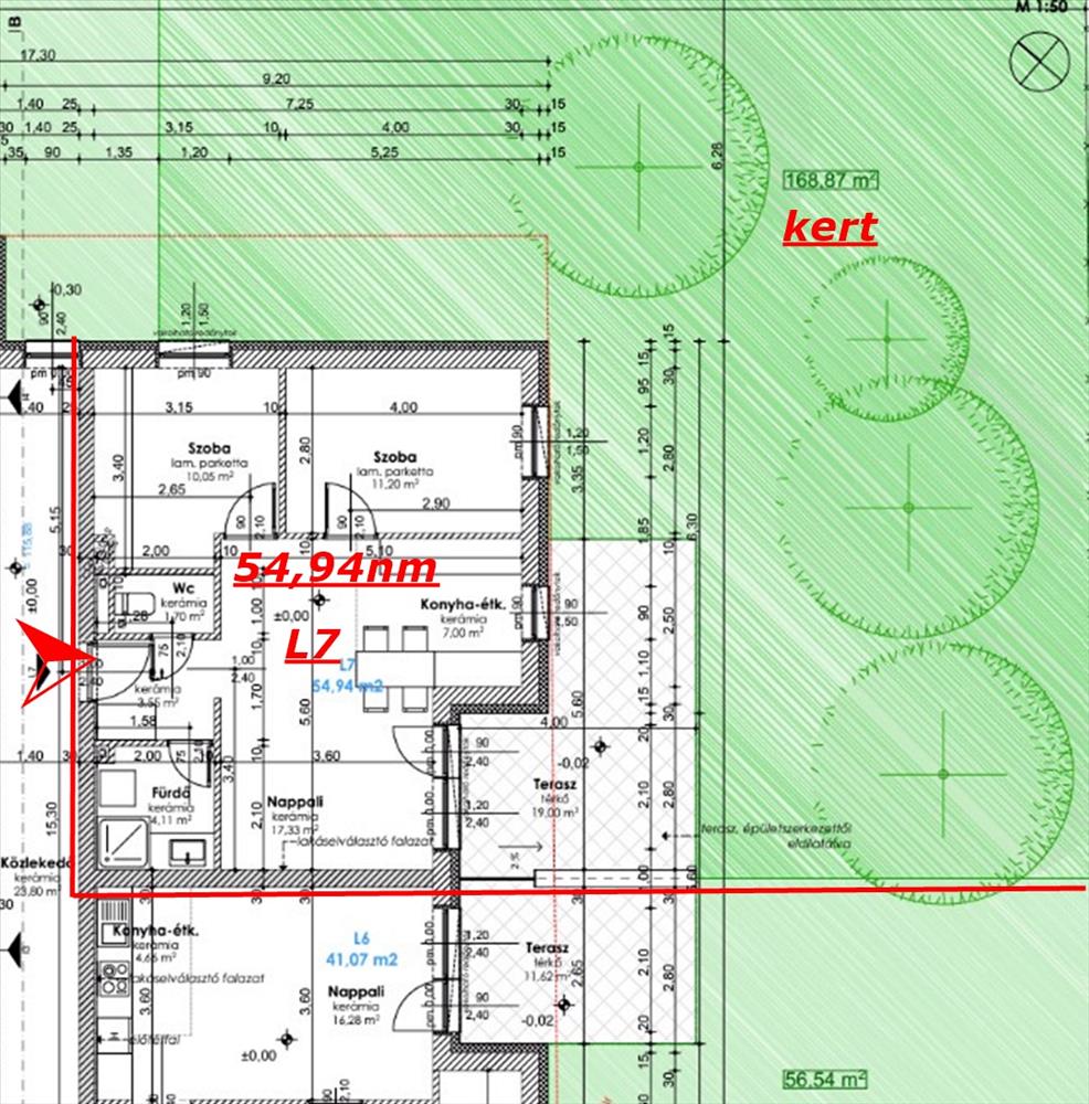 A jelen ingatlan földszinti, 54, 94nm + 168nm saját használatú udvar /L7/