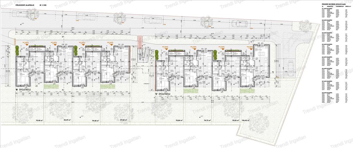 A modern társasházban nappali + 1 szobás, nappali + 2 szobás és nappali + 3 szobás lakások kerülnek kialakításra. a földszinti lakások kertkapcsolattal és terasszal, az emeleti lakások erkéllyel, galériával és tetőterasszal, a penthouse lakások tetőterasszal rendelkeznek.