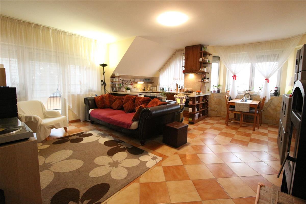 Győrménfőcsanak rendezett, jól megközelíthető, csendes utcájában kínáljuk eladásra ezt a 662 m²-es telken elhelyezkedő, négylakásos társasház első emeletén található, tetőtér kialakítású, 74 m² nettó (82 m² bruttó) alapterületű, 3 szoba + étkező-konyha-nappali elrendezésű ingatlant, 6 m²-es erkéllyel, az udvarban fedett gépjárműbeállóval és zárt tárolóval.