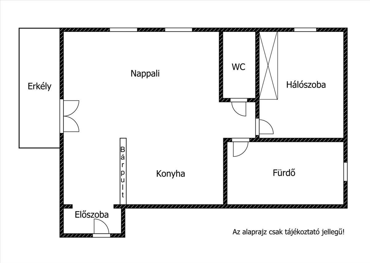 ÉTKEZŐ-KONYHA-NAPPALI, erkély, hálószoba, fürdő és külön wc