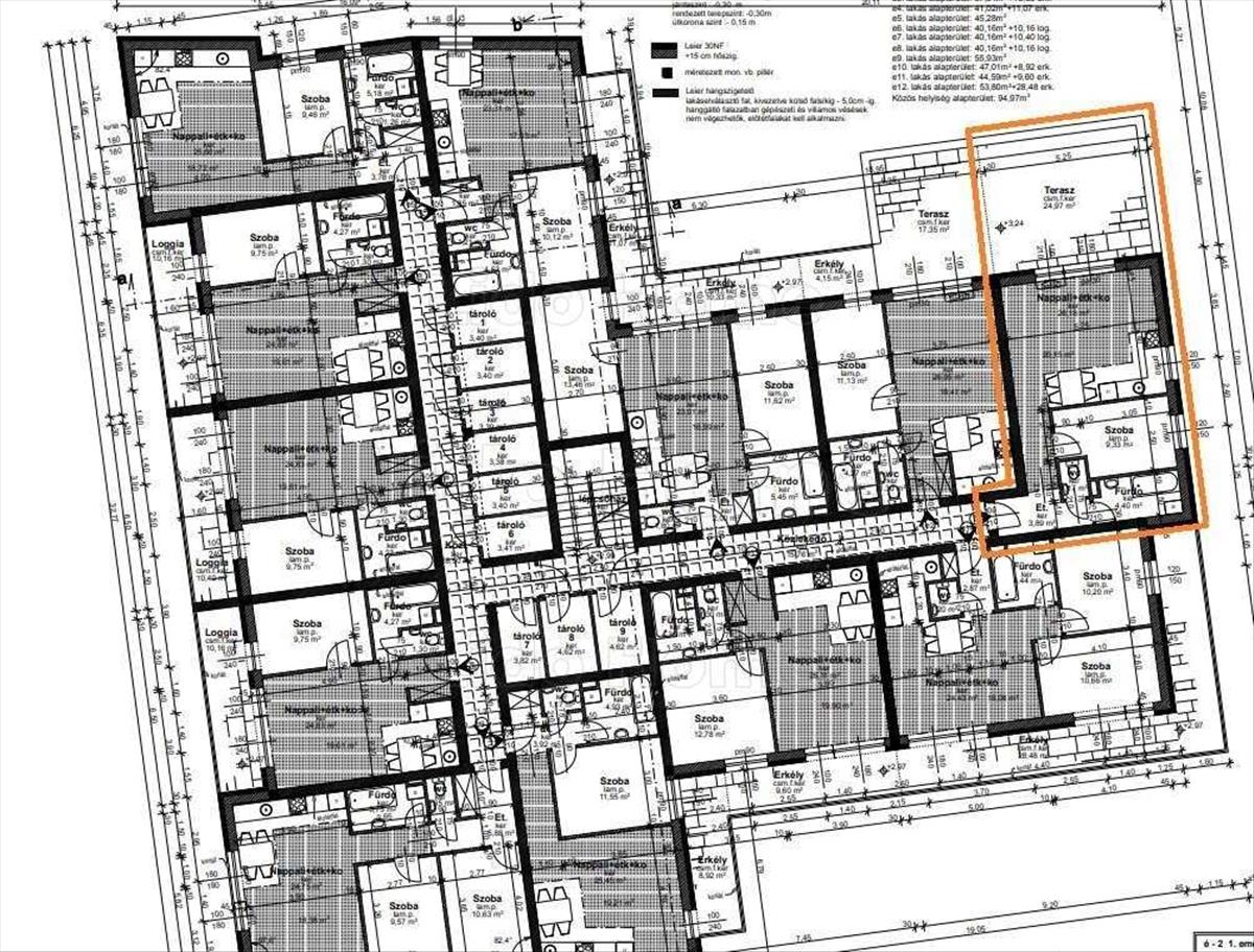 Az első emeleti lakás mérete: 44, 96 nm + 24, 97 nm TERASZ!
