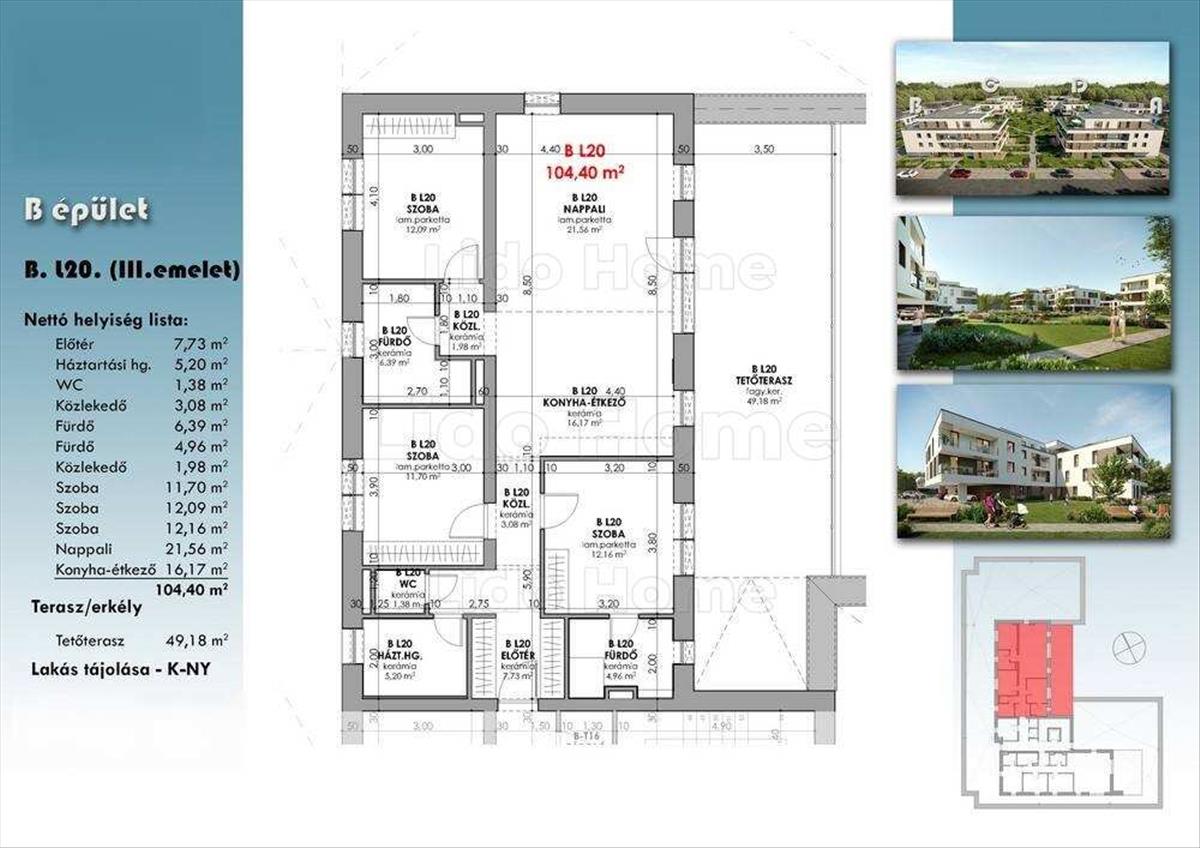 Az B épület 3. emelet L20-es penthouse lakása, amely 104, 4 m²-es területéhez 49, 18 m²-es tetőterasz is tartozik, egy olyan lehetőség, melyet nem szabad kihagyni!