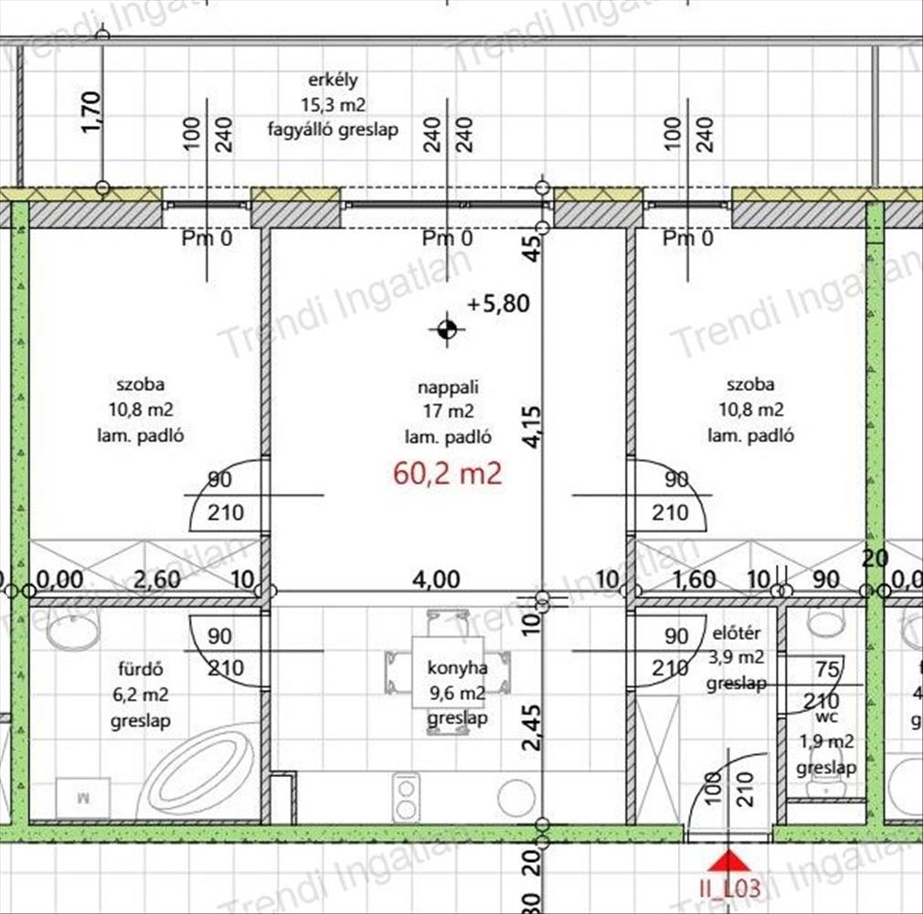 A meghirdetett 2. emeleten található 60, 20 nm -es lakásban amerikai konyhás nappali, 2 szoba, fürdőszoba, külön wc, előtér kerül kialakításra. Nappaliból 15, 30 nm -es erkély nyílik.