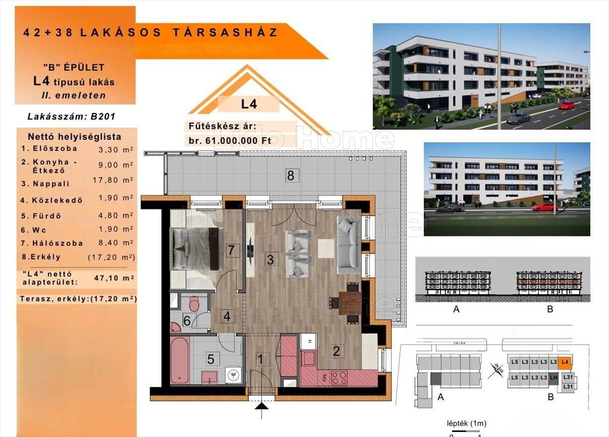 Lakásadatok: 'b' épület 2. emelet l4 201 lakás