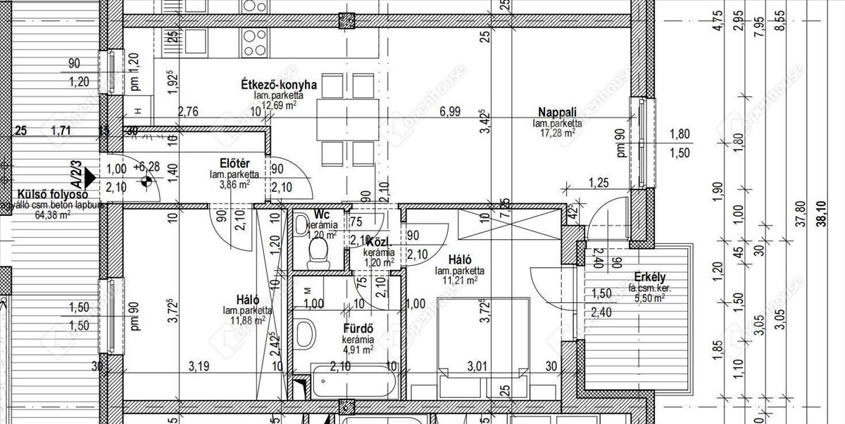 64, 24 m² alapterület + 5, 5 m² erkély, ideális reggeli kávézáshoz vagy esti pihenéshez