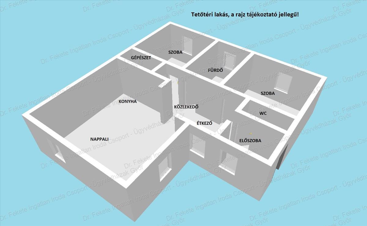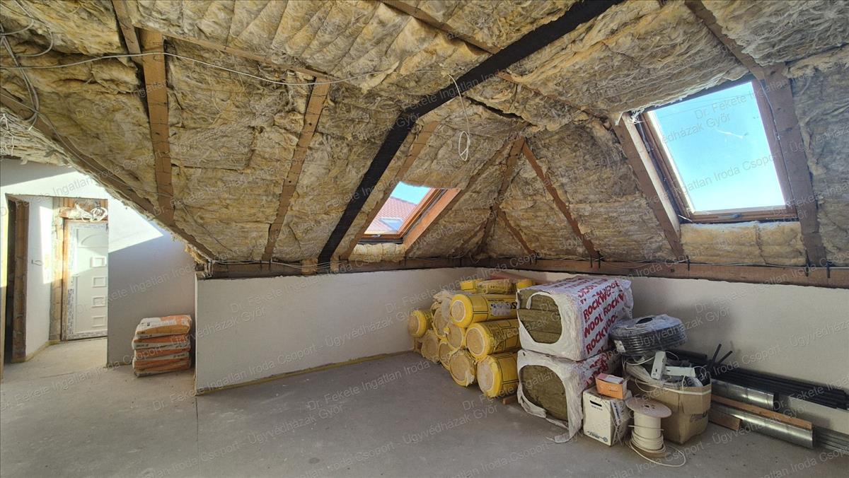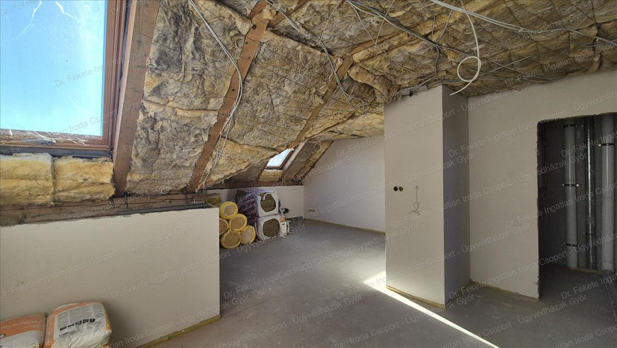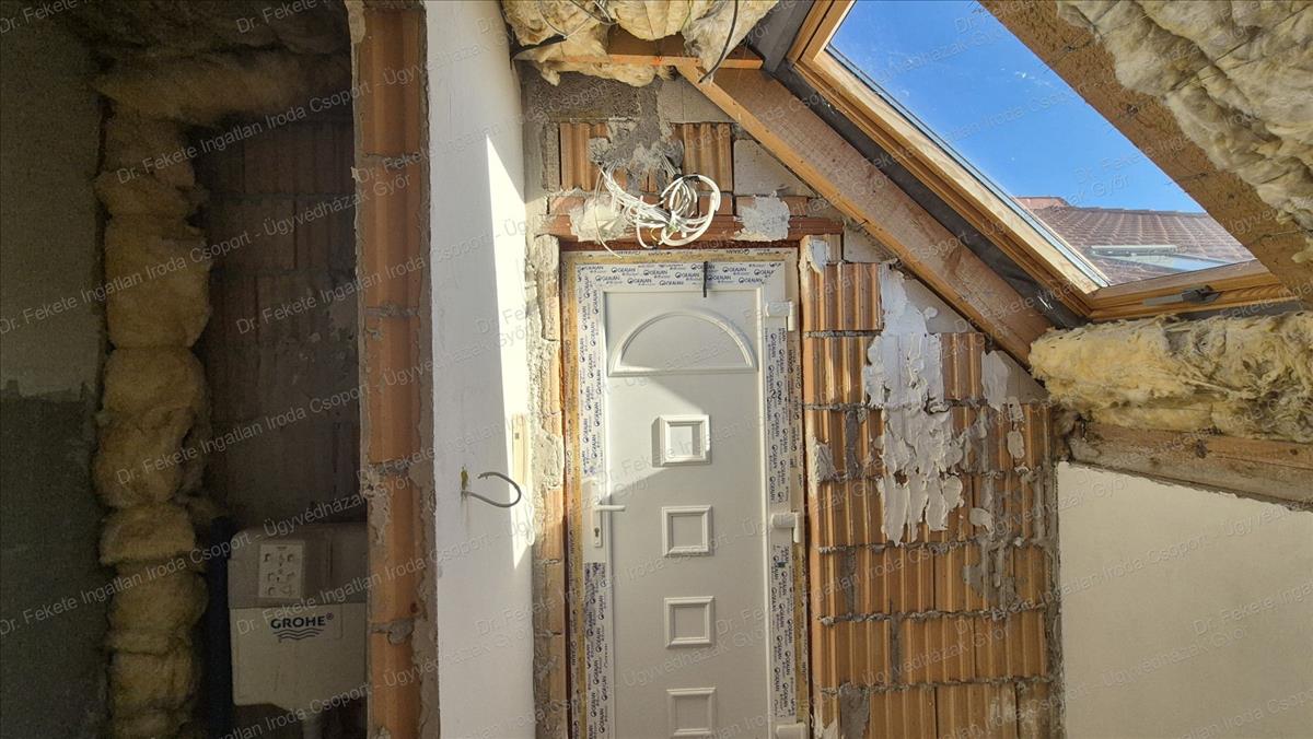 a nappali + 2 szobás, hátsó udvarra néző tetőtéri téglalakás fűtéskészen.