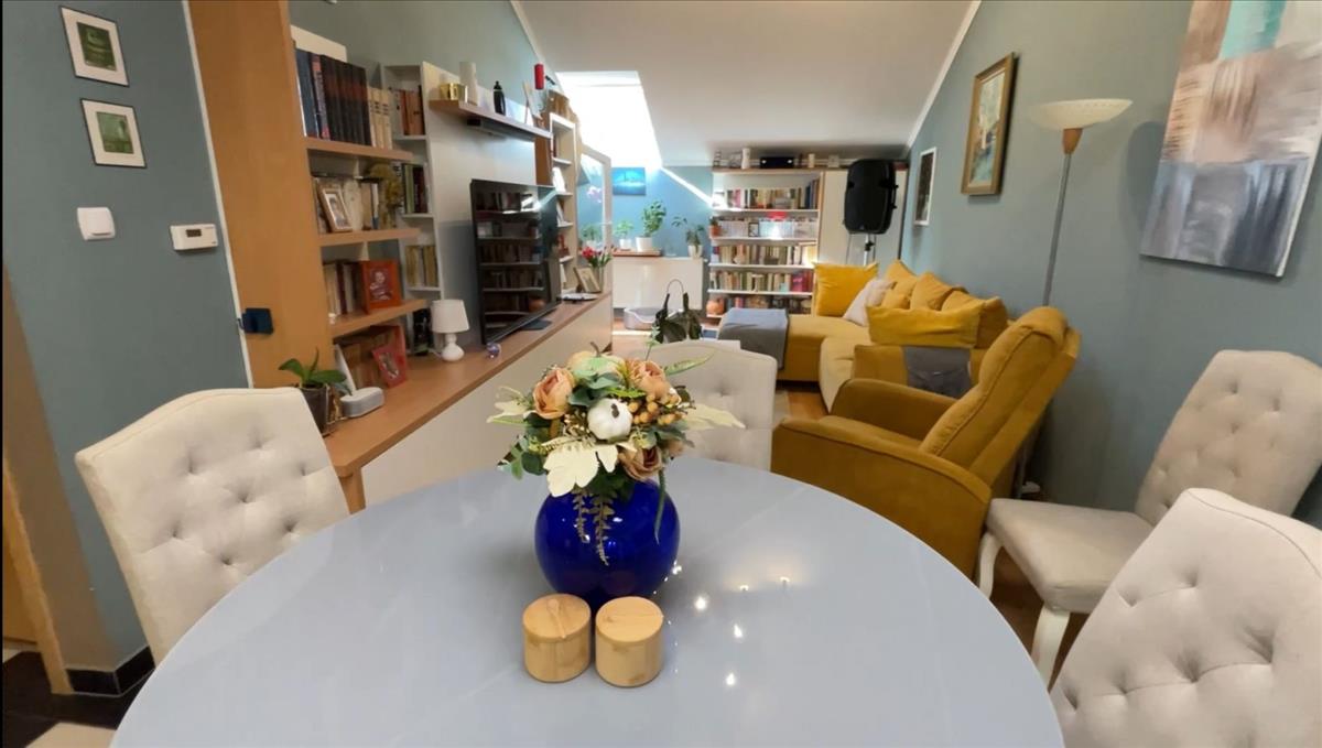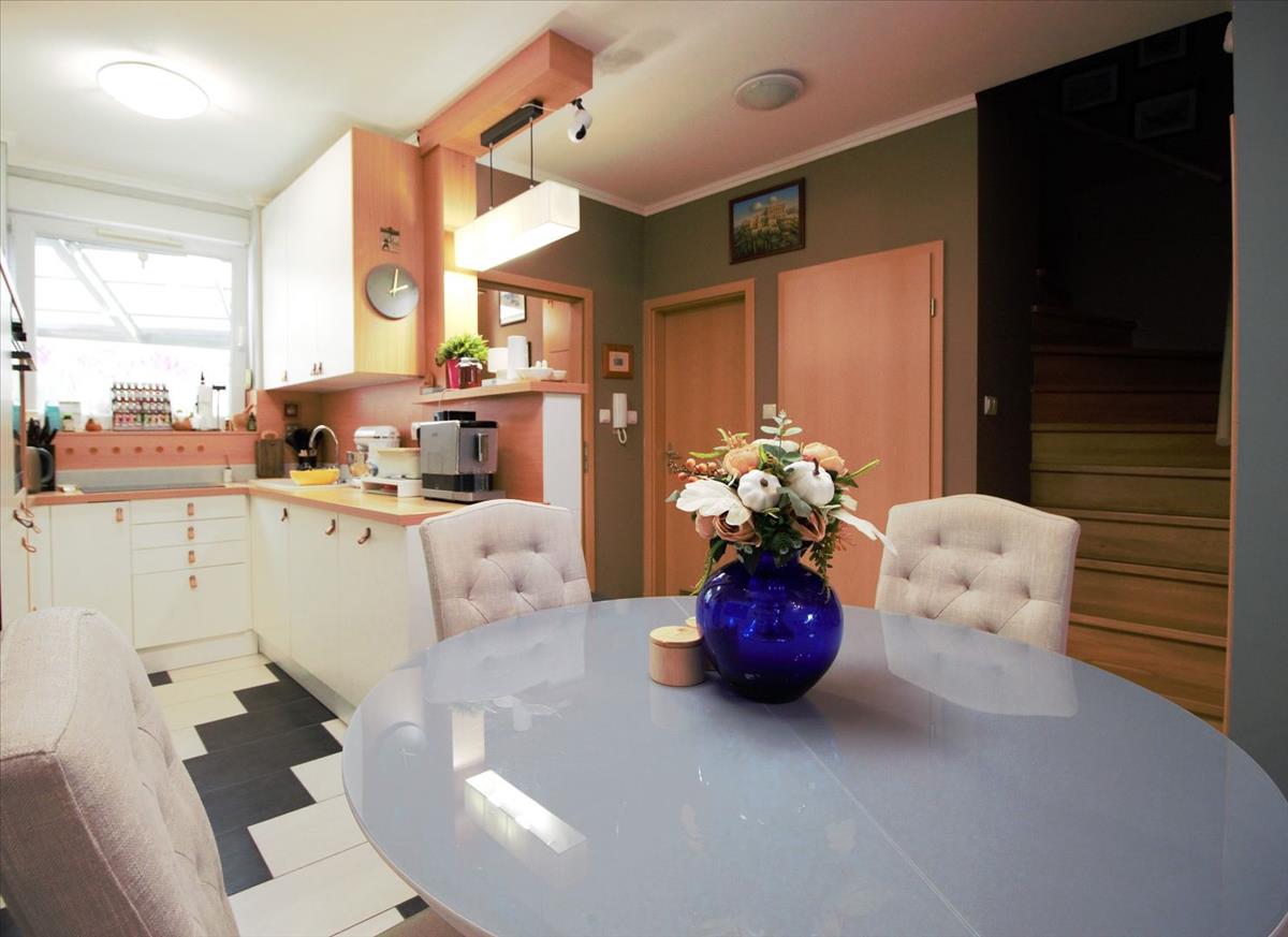 • Tökéletes elosztás: földszinten étkező-konyha-nappali, szoba, fürdő káddal, wc és egy terasz, ami a nappaliból és a szobából is elérhető