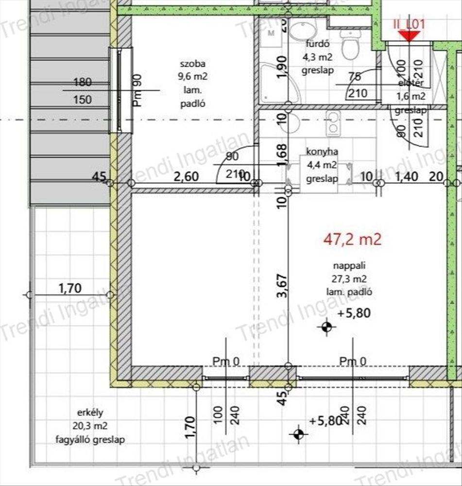 A meghirdetett 2. emeleten található 47, 20 nm -es lakásban amerikai konyhás nappali, szoba, fürdőszoba, előtér kerül kialakításra. Nappaliból tágas 20, 30 nm -es erkély nyílik.