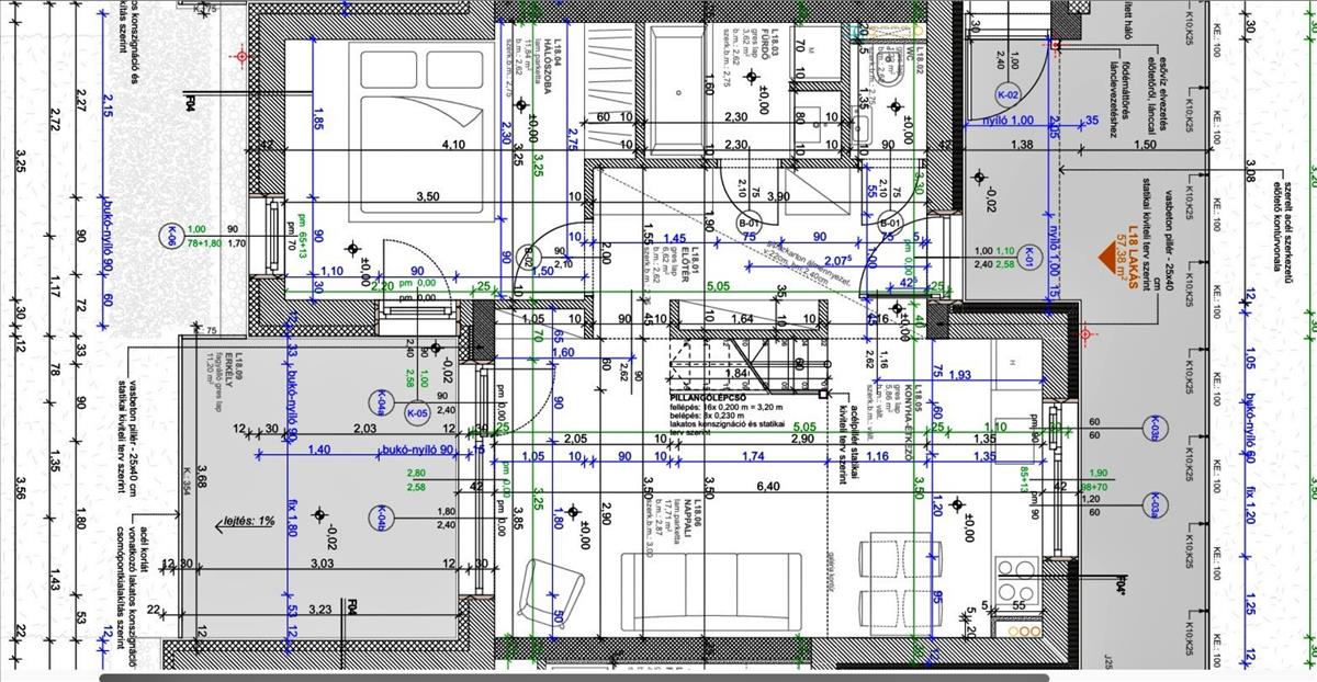 Az első emeleti, belső kétszintes 57, 51 m2-es l18 lakás helyiségei: