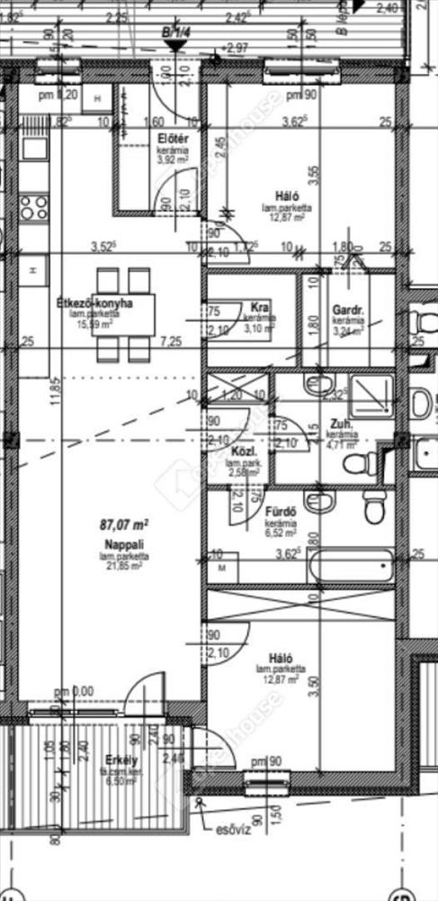 -87, 07 m² alapterület + 6, 5 m² erkély – a lakáshoz tartozó önálló helyrajzi számmal rendelkező mélygarázs-beálló és a külön tároló helyiség egyaránt benne van a vételárban