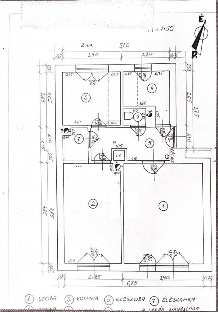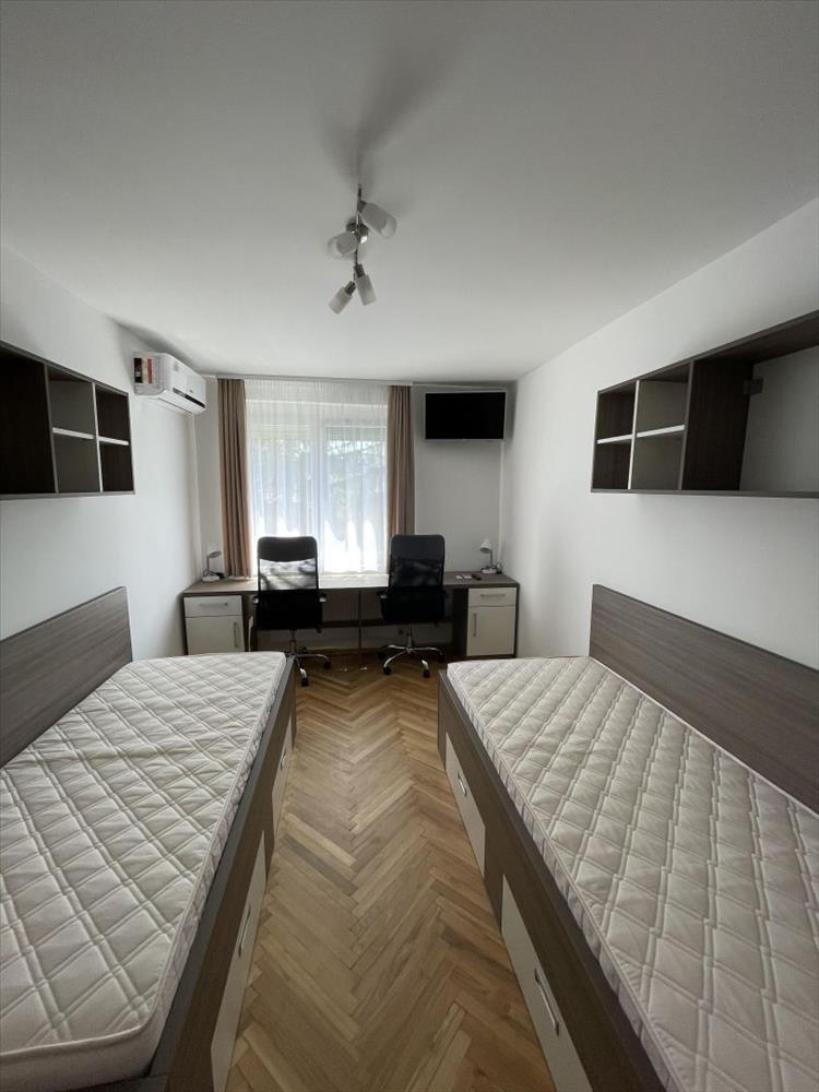 Az előszobából nyílik két külön bejáratú szoba, (a nagyobbik erkélyes), a konyha–étkező, a mosókonyha, a zuhanyzós fürdőszoba kétállású mosdóval és WC-vel, valamint egy külön wc is.