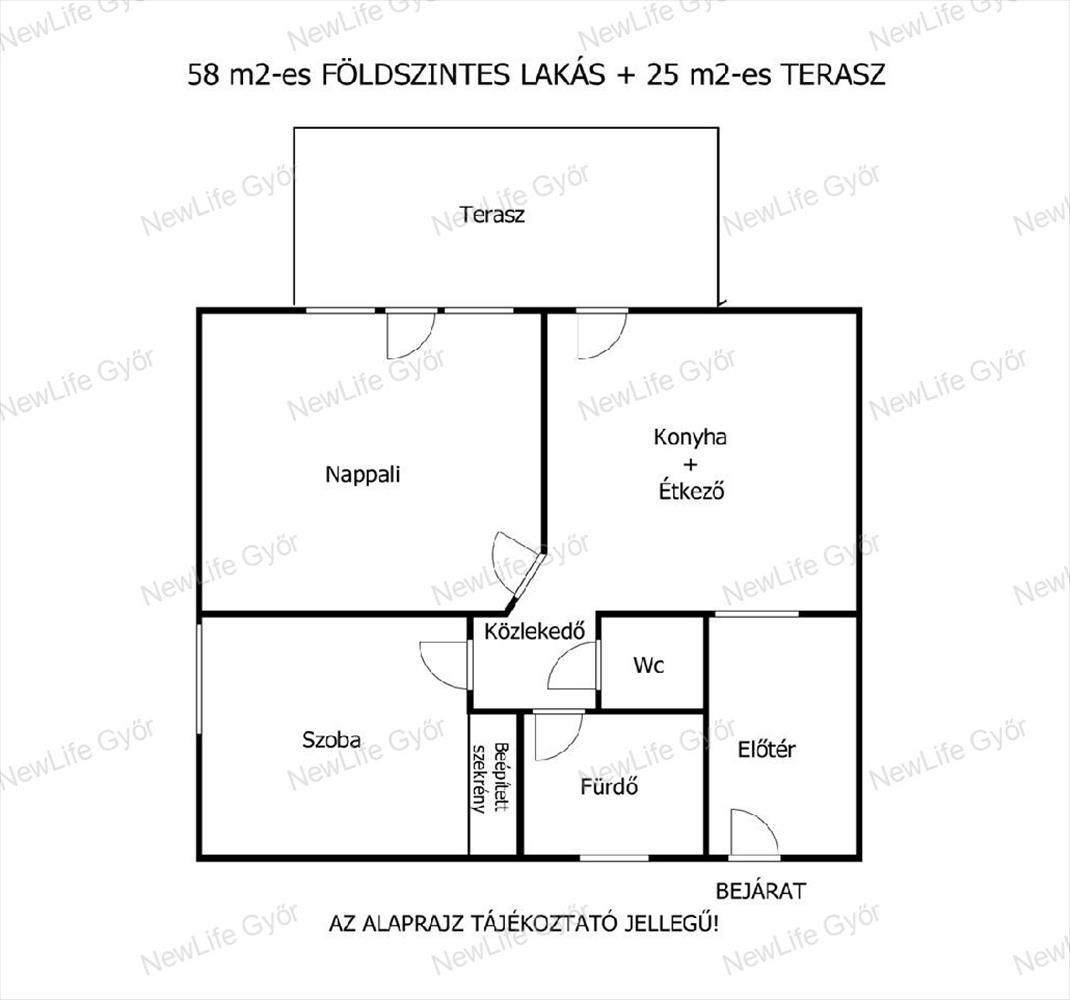 Győr-Likócson, csendes, kulturált környezetben vár Téged ez a 58 m²-es, nappali + 1 szobás, konyha-étkezős, földszinti téglalakást, amelyhez saját kert, fedett terasz és gépkocsibeálló is tartozik.