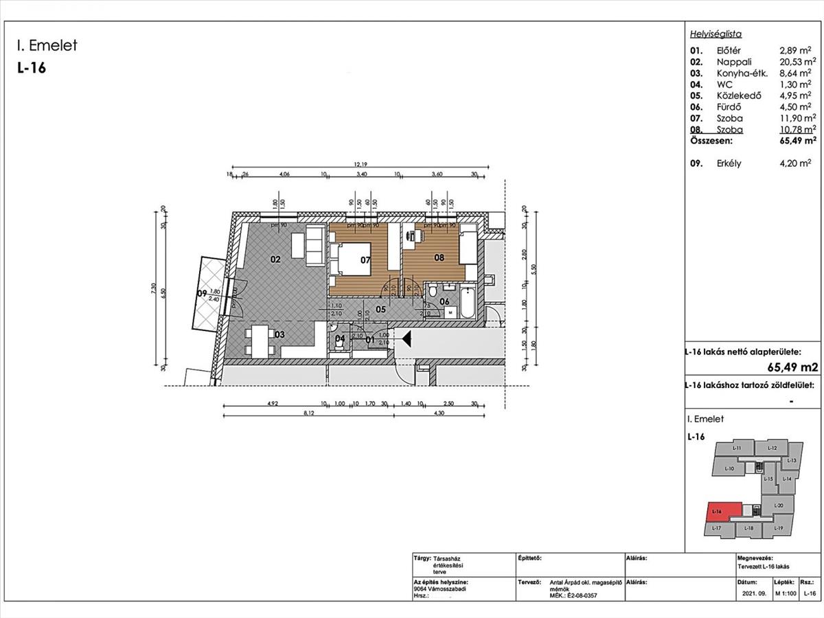 L16 – 1. emelet, 65, 49 m2 + 4, 2 m2 erkély bruttó 62. 520. 750 Ft