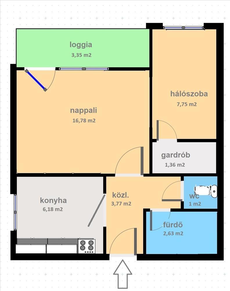 • Élhető, jól berendezhető tér – 43 m² alapterület