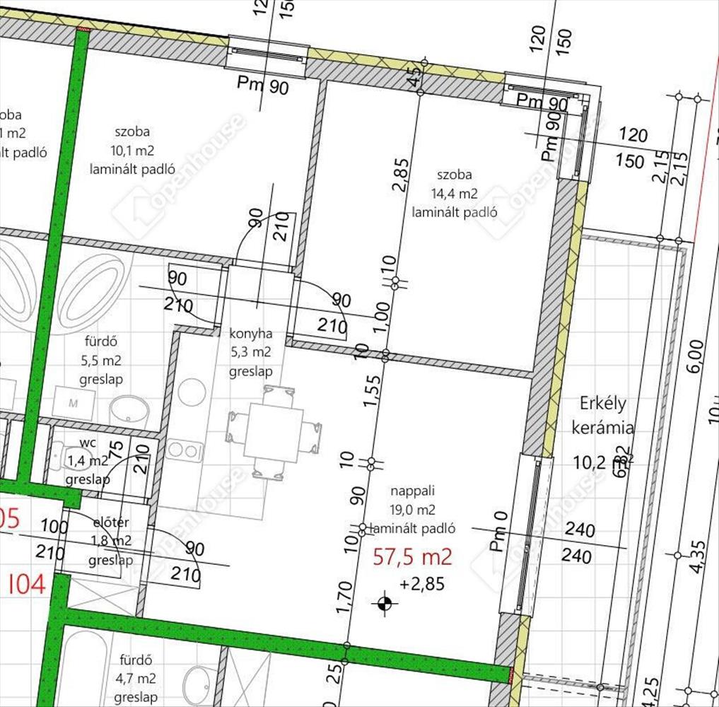- I. E4-es lakás 57, 5 m2 + 10, 2 m2 erkély