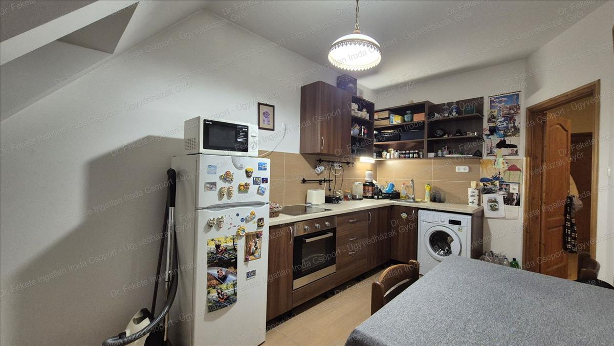 Győr-Szigetben, a belvároshoz, a Rába Quelle Gyógy-, Termál- és Élményfürdőhöz, az Egyetemhez közel, eladó ez a 84 nm lakóterű, 2 önálló lakrészből álló ingatlan, teljes berendezéssel, 1 db zárt udvari parkolóval.
