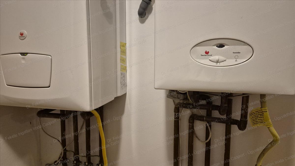 A két lakrész fűtése gázkazánról működik, hőleadók radiátorok, külön termosztátokkal,