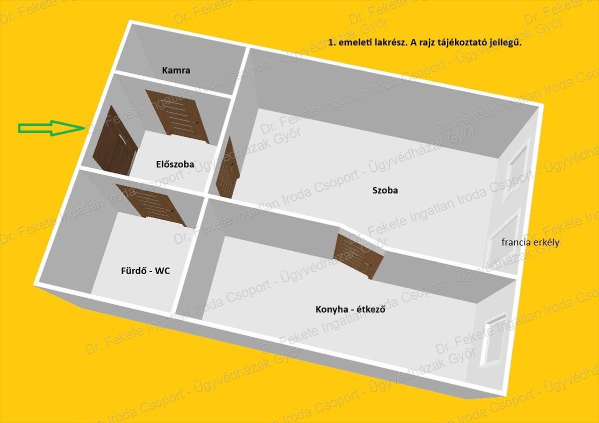 1 szoba, konyha, fürdő-WC, gardrób, francia erkély,