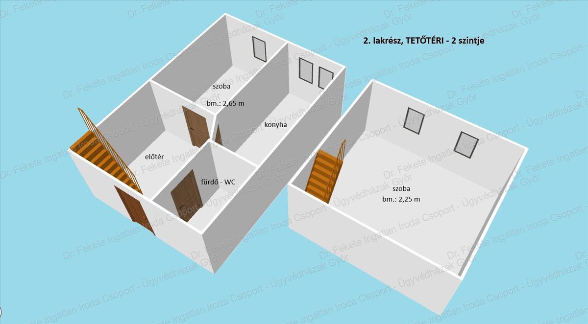 2. Lakrész: tetőtér beépítéssel, a 2. emeletről van a bejárata, amely belső kétszintes:
