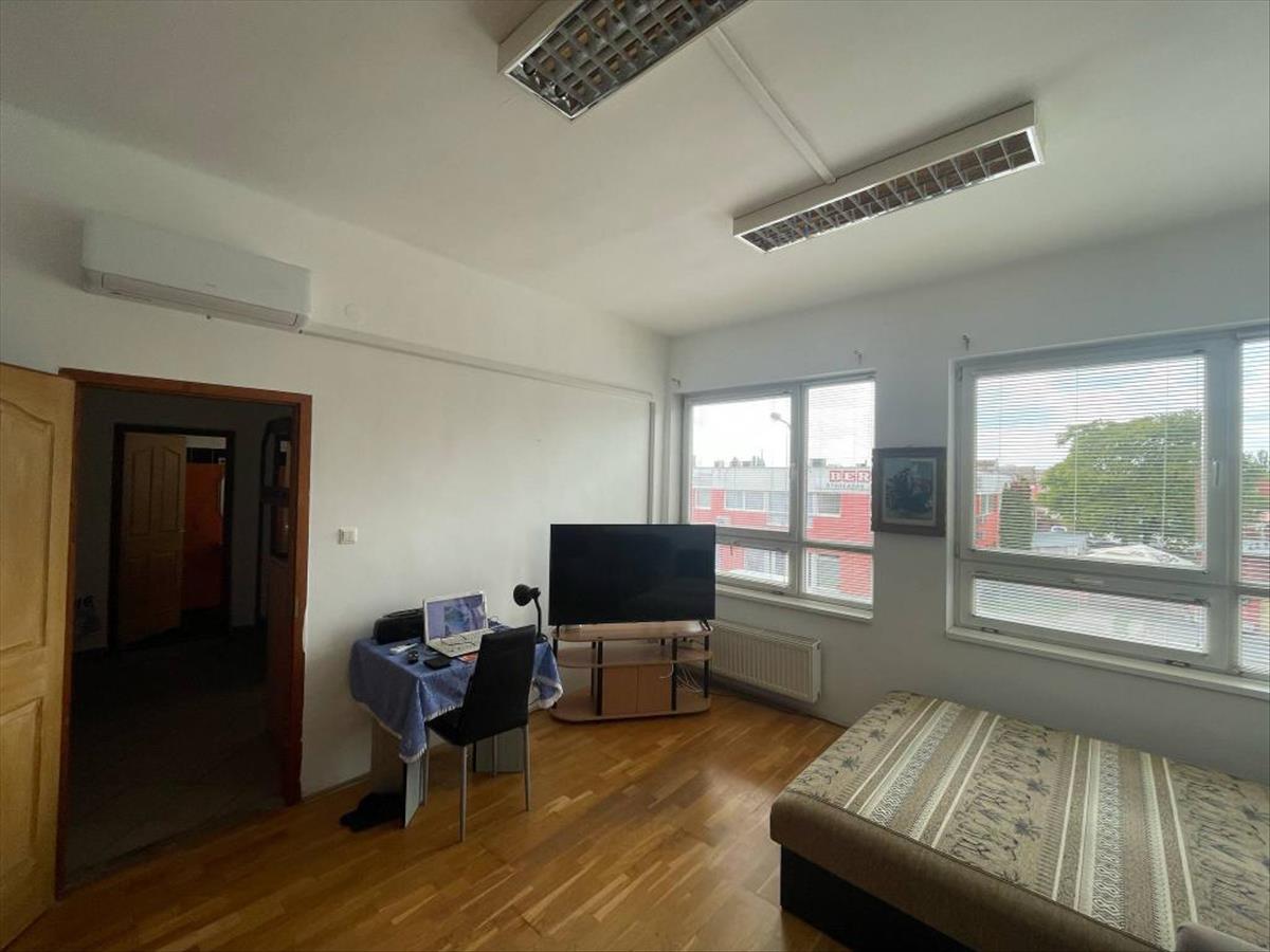 Győr-Gyárvárosban, az Ipar út és a Puskás t. Út sarkán, ipari környezetben, téglaépítésű társasházban i. Em-i, 38 nm -es, 1 szobás, központi fűtéses, klimatizált téglalakás eladó.