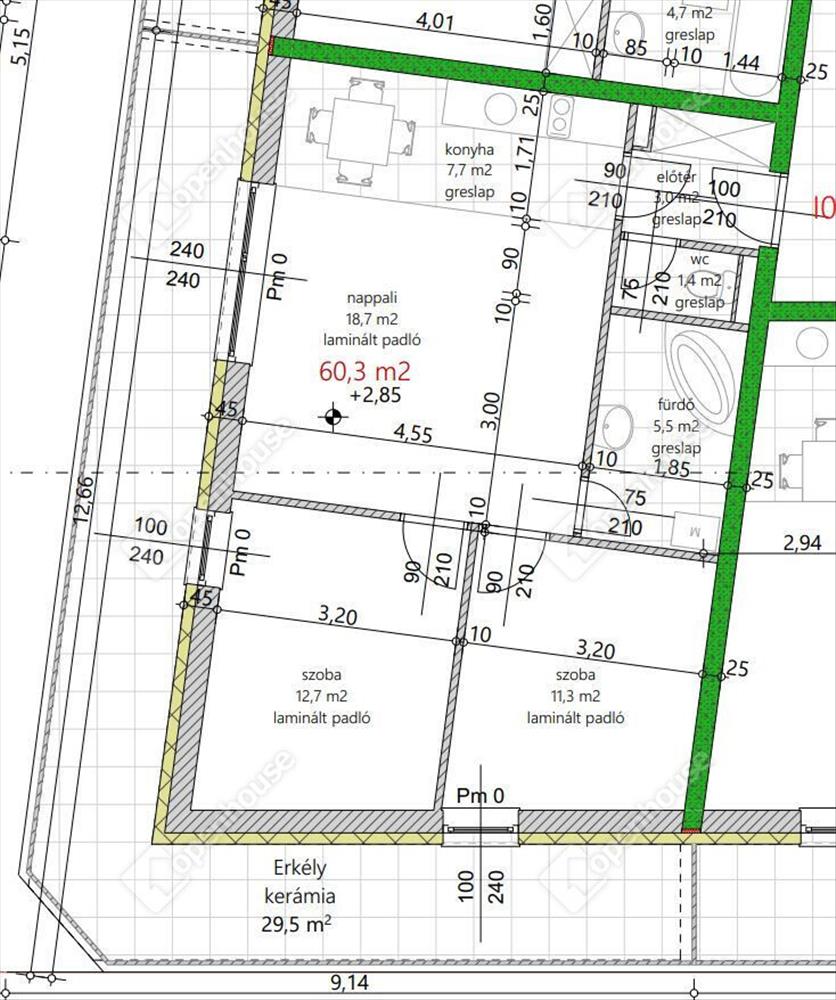 - II. E1-es lakás 60. 3 m2 + 29. 5 m2 terasz