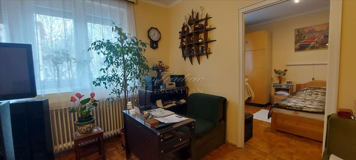 A lakás egy 1968-ban épült, tégla szerkezetű, mindössze 8 lakásos társasház első emeletén található. Az ingatlan 61 m2-es, 3 szoba-konyhás, külön fürdővel és mellékhelyiséggel, kamrával, kifejezetten jó-és logikus elosztással, beépített szekrényekkel.