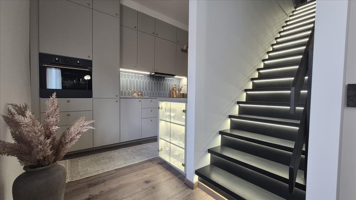 A két szintes, 69nm -es lakásban megtalálható egy légtérben de kicsit elkülönülten egy konyha-étkező-nappali-olvasó vagy dolgozó sarok, 2 fürdő-wc-vel és három félszoba.