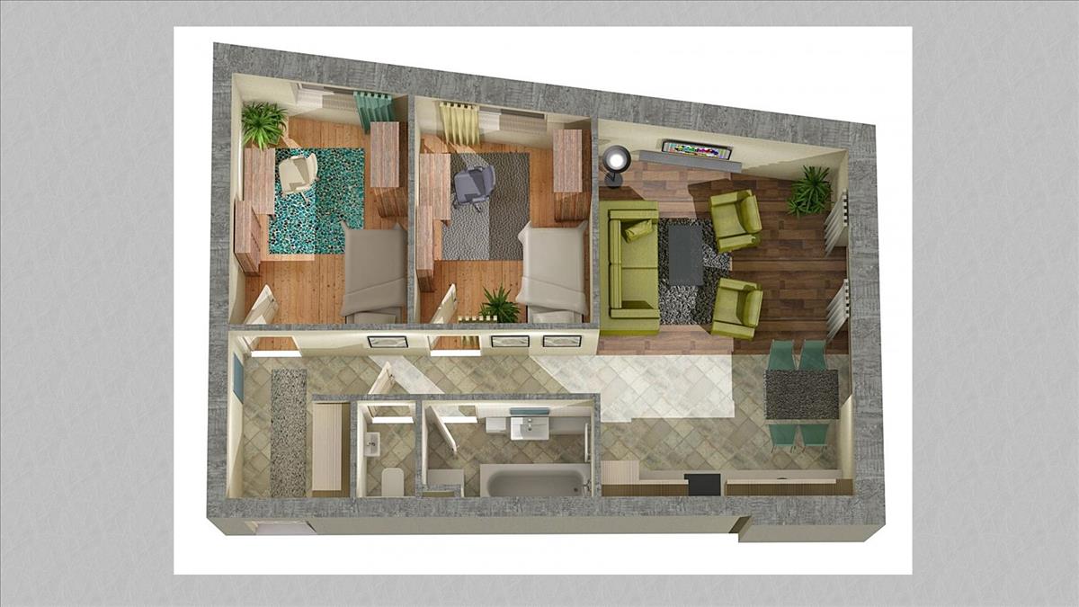 Amerikai konyhás nappali - 2 hálószoba tartozik a lakáshoz.