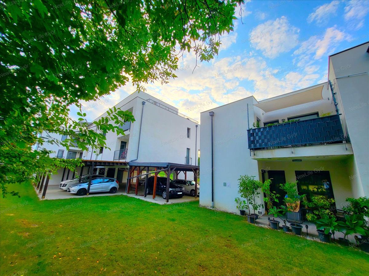- Lakáshoz tartozik: 2 fedett parkoló + saját, 9 m²-es tároló Hörmann kapuval, villannyal – együttesen +18 M Ft. (A megvásárlásuk szükséges. )