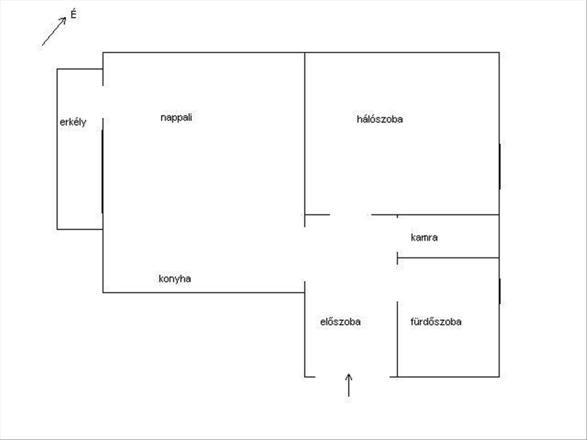 Elrendezése: előszoba, amerikai konyhás nappali étkezővel, erkély, háló, fürdőszoba wc-vel, éléskamra