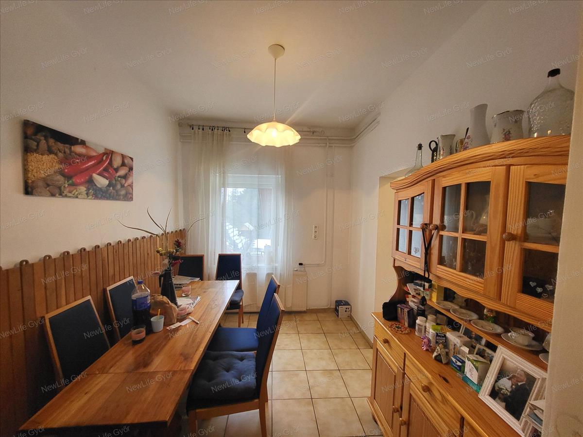 Győr–Ménfőcsanakon, frekventált, mégis nyugodt kertvárosi környezetben eladó egy kétlakásos társasház első emeleti, külön bejáratú lakása, amely valójában egy családi ház teljes felső szintjét jelenti, saját használatú kerttel és melléképületekkel.