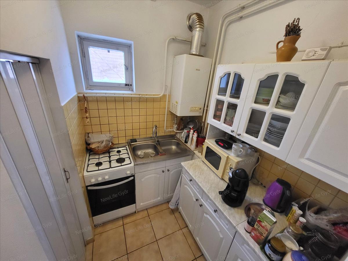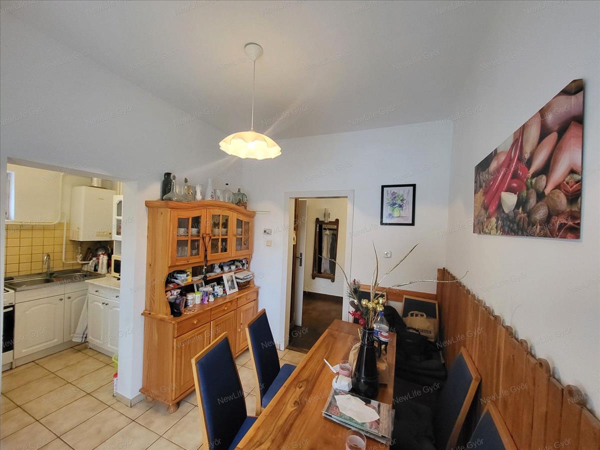 Győr–Ménfőcsanakon, frekventált, mégis nyugodt kertvárosi környezetben eladó egy kétlakásos társasház első emeleti, külön bejáratú lakása, amely valójában egy családi ház teljes felső szintjét jelenti, saját használatú kerttel és melléképületekkel.