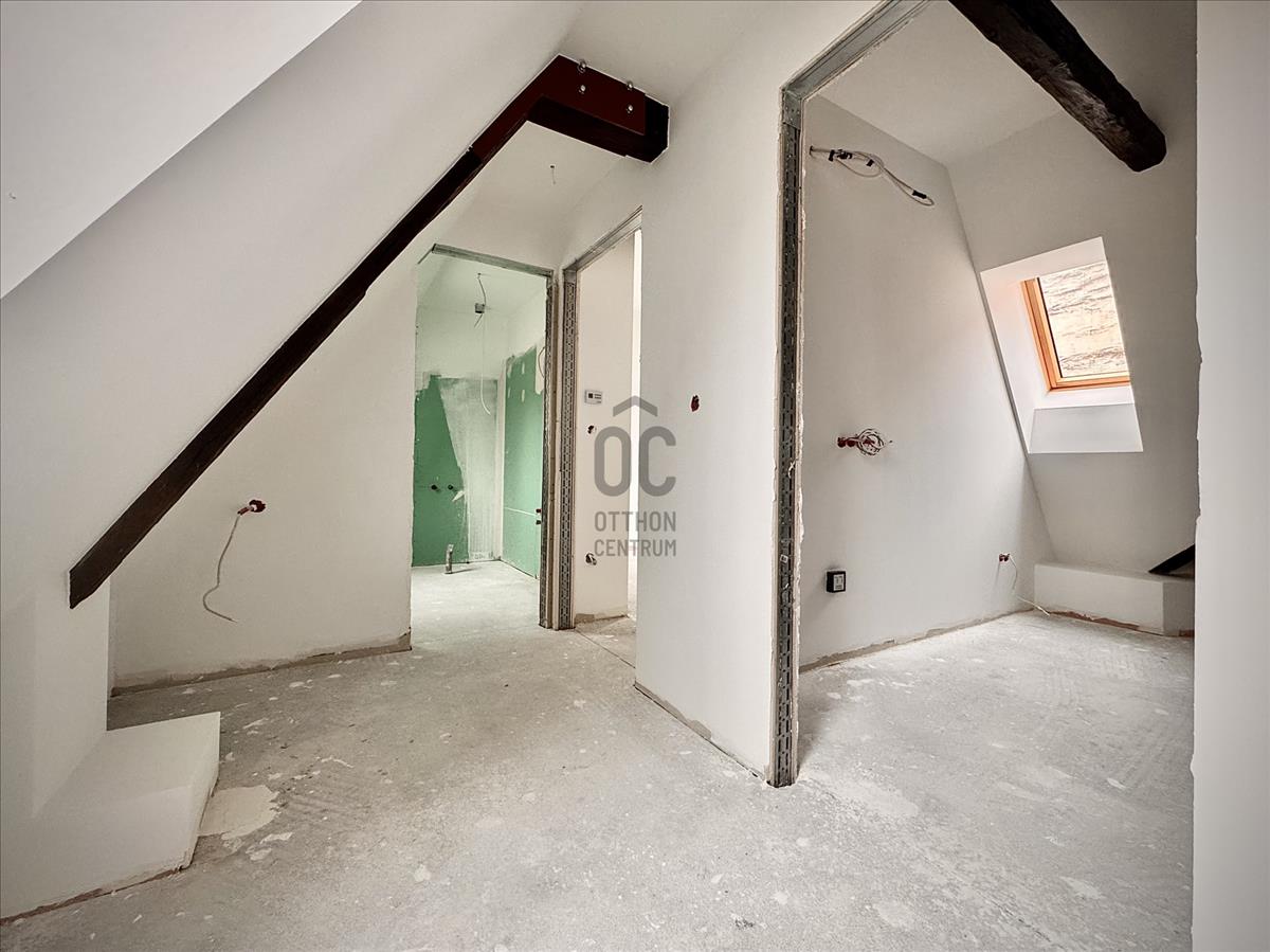 A második emeleti 110, 13 m² -es, tetőtéri lakás Győr-Újváros műemléki részén helyezkedik el, mindössze 10 perc sétára a belvárostól. Ez az a pont a városban, ahol a központ közelsége kényelmet jelent, nem pedig kompromisszumot.A lakás teljes körű felújításon esett át, megőrizve a történelmi épület műemléki értékeit. a burcsellás tetőszerkezet látványos, a látszó fa gerendái különleges karaktert adnak a lakásnak.