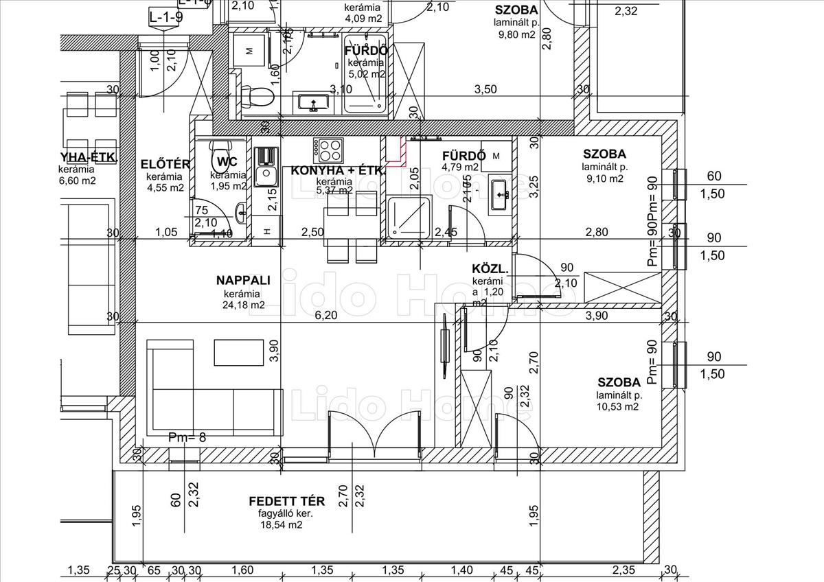 -1. emelet, 61, 67 m² + 18, 54 m² erkély