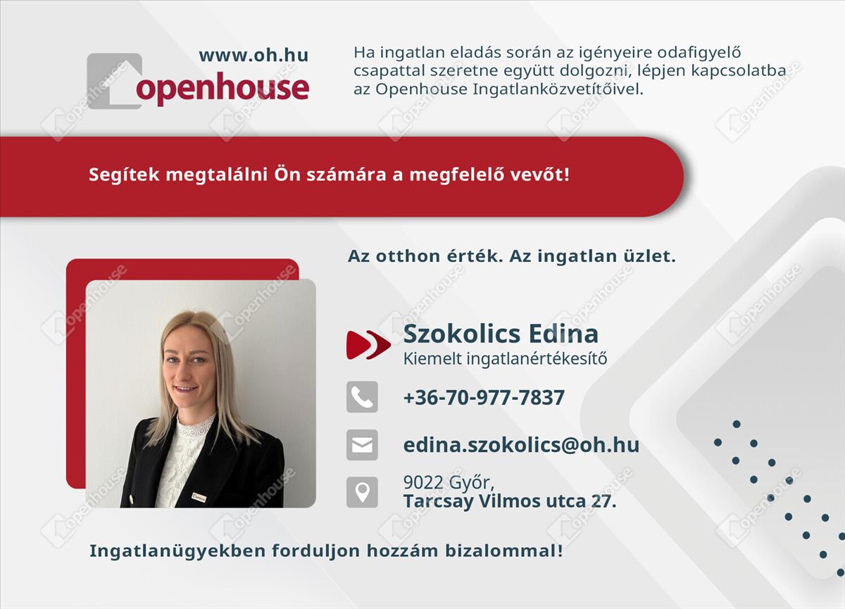 Az Openhouse Győr - Belváros Ingatlaniroda tagjaként várom Önt az országos hálózatunk teljes kínálatával.
