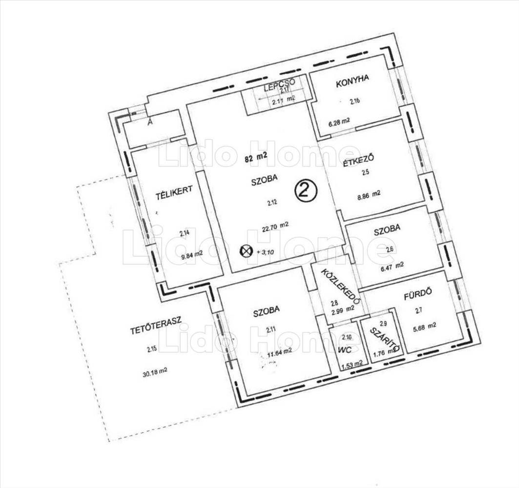 Az eladás tárgya egy 82 m²-es emeleti lakás, amelyhez tartozik: