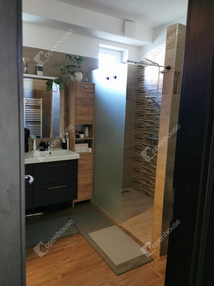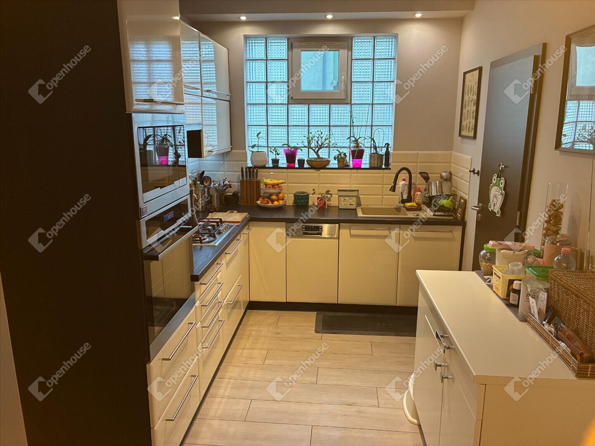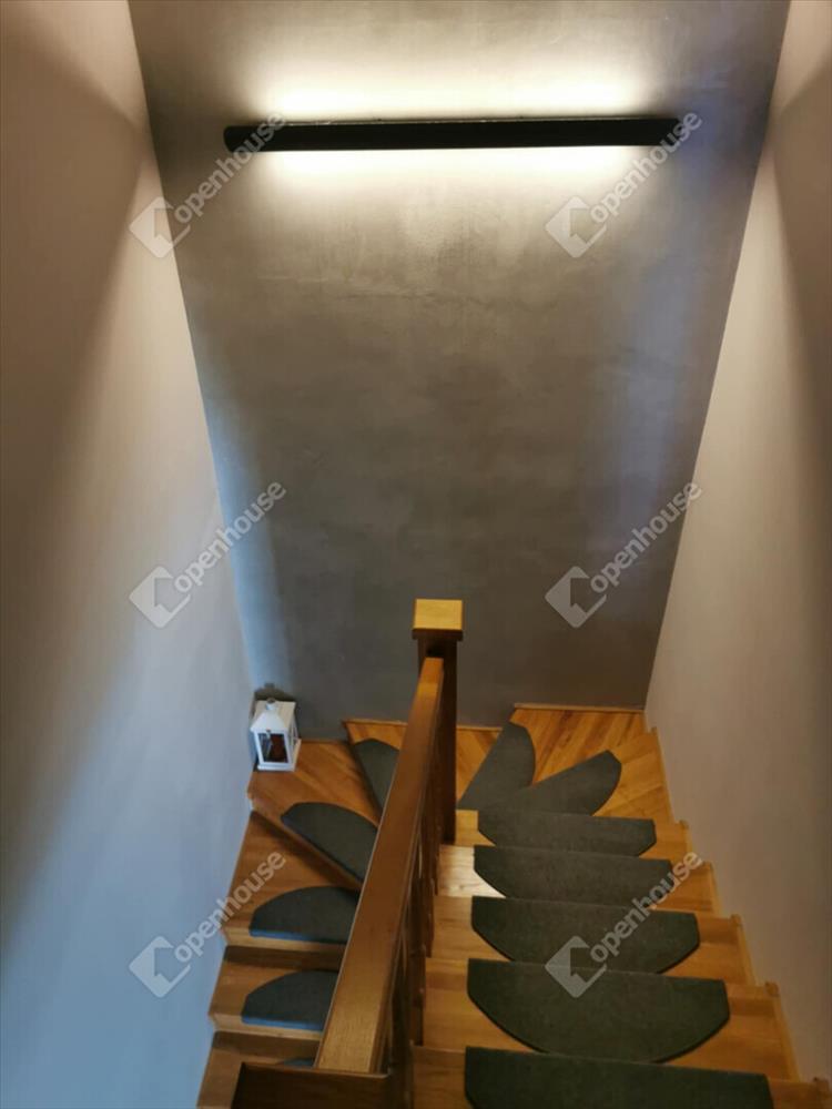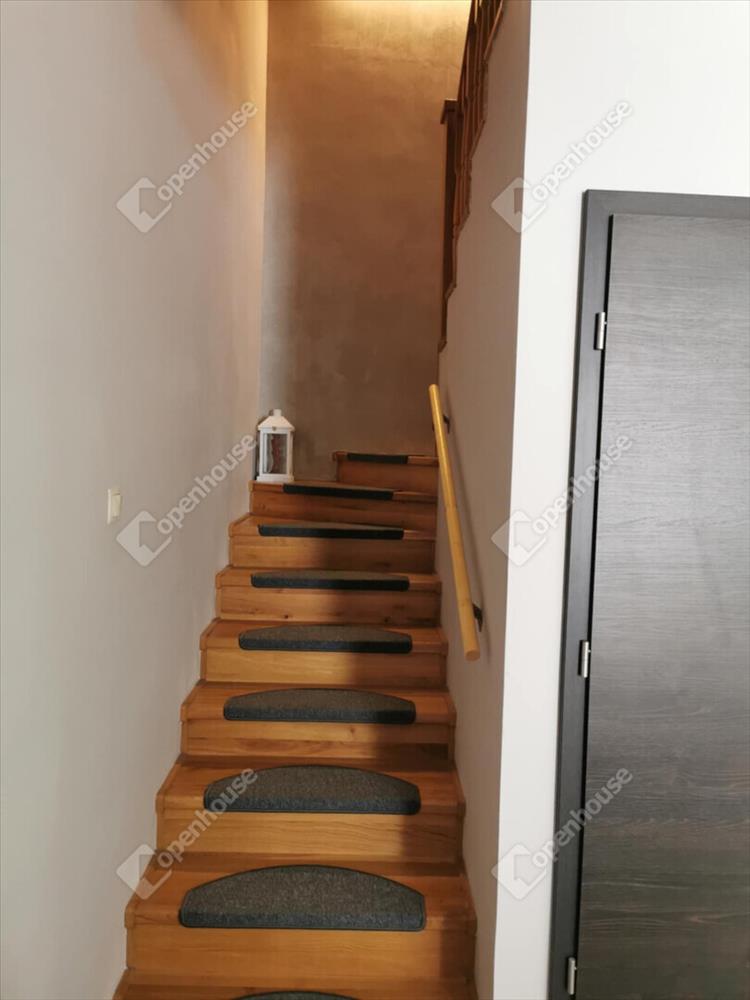 Az alsó szinten található a nappali–étkező–konyha egy légtérben, közvetlen teraszkapcsolattal, ami kellemes, tágas életteret biztosít. a modern, gépesített beépített konyha azonnal használatra kész. a fűtés padlófűtéssel és radiátorral is megoldott, külön termosztáttal szabályozható.