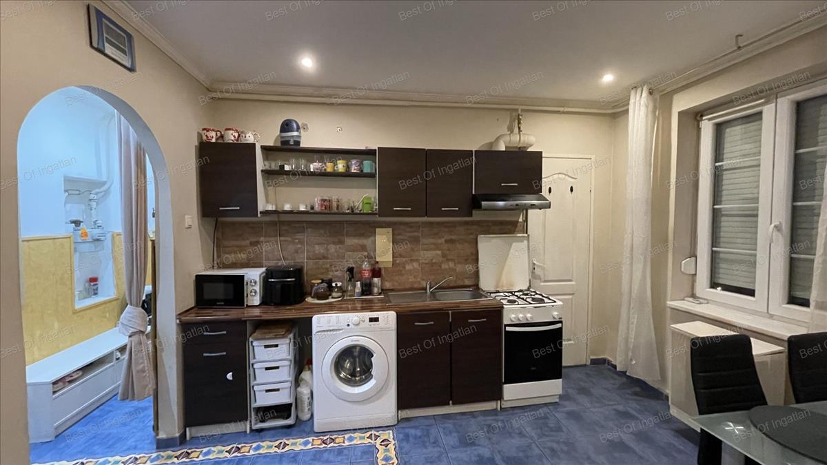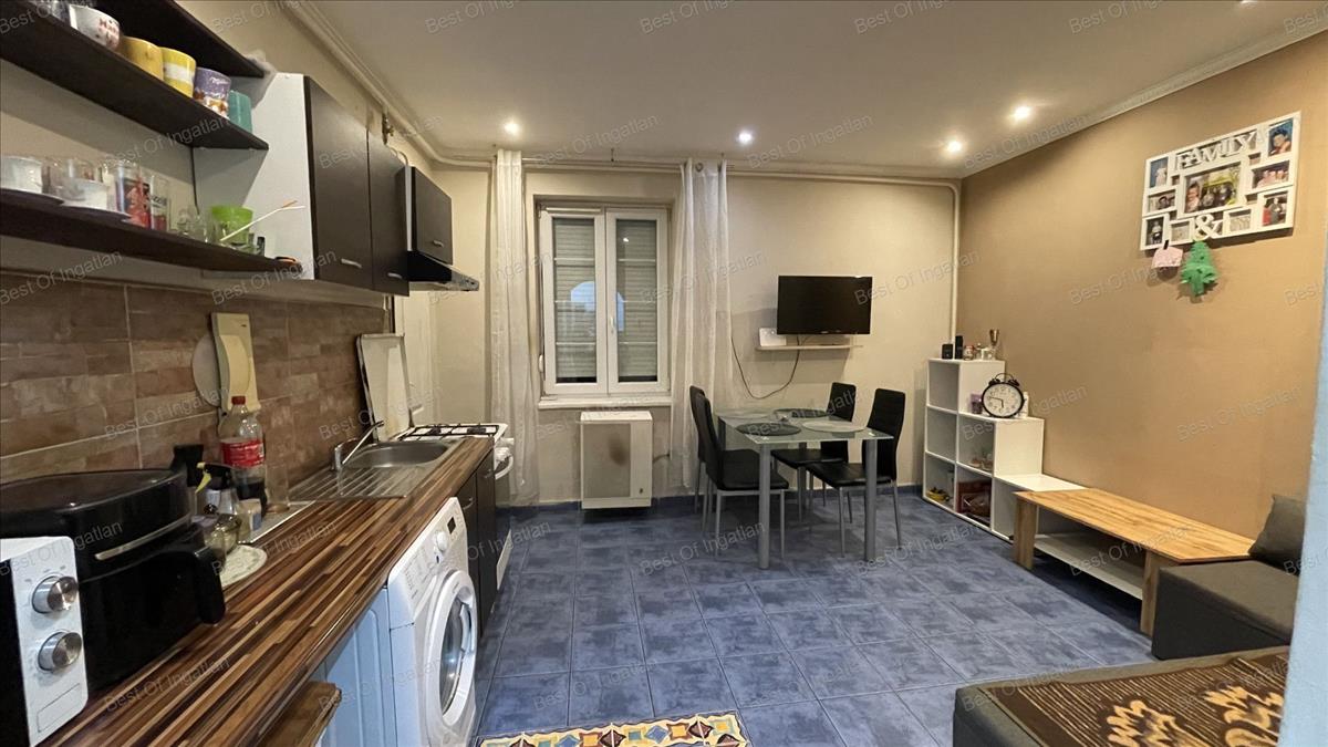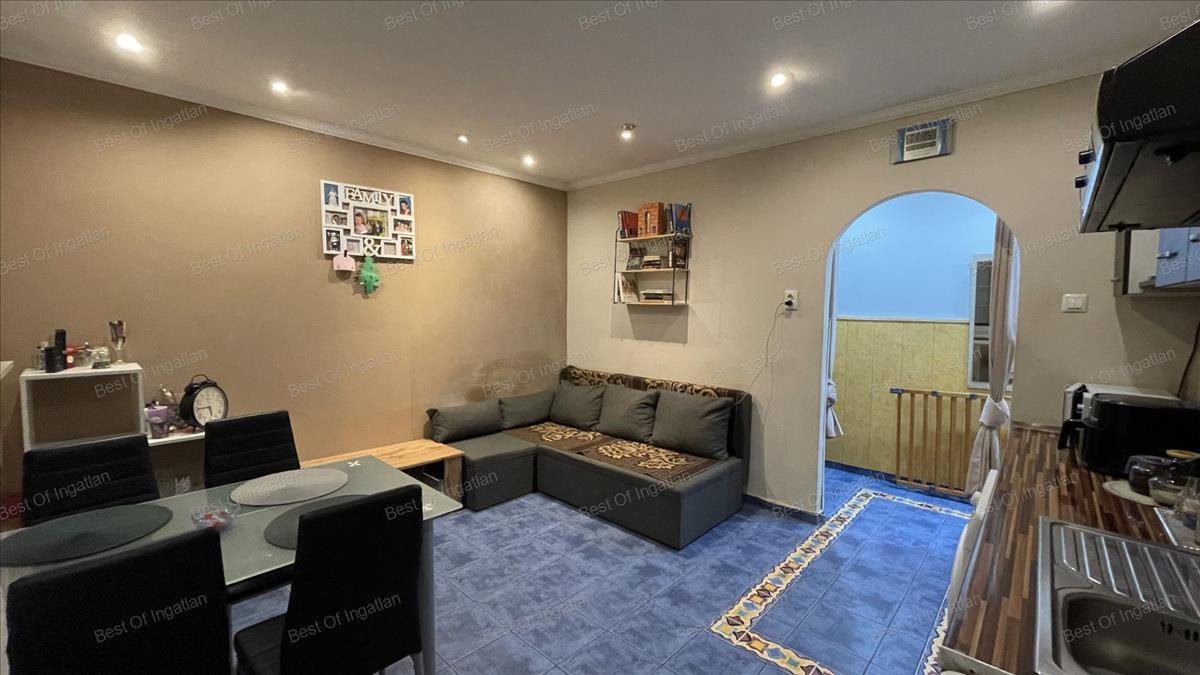 - lakótere 42 m2-es, melynek remek elosztása: előszoba, nappali + konyha + étkező, kamra, egy hálószoba, sarokkádas fürdőszoba wc-vel