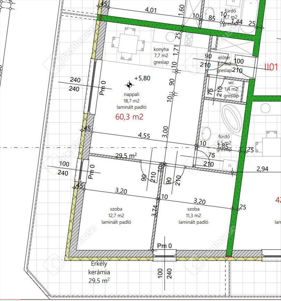 - II. E1-es lakás 60. 3 m2 + 29. 5 m2 terasz