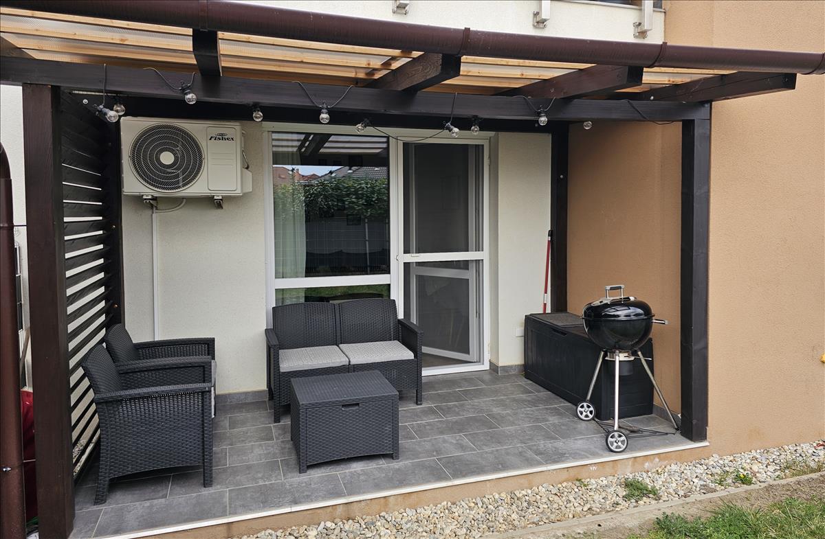 Eladó újszerű, földszinti, 60, 5 nm -es téglalakás saját kerttel Győr-Ménfőcsanak határában, a győrújbaráti Százszorszép Lakóparkban.