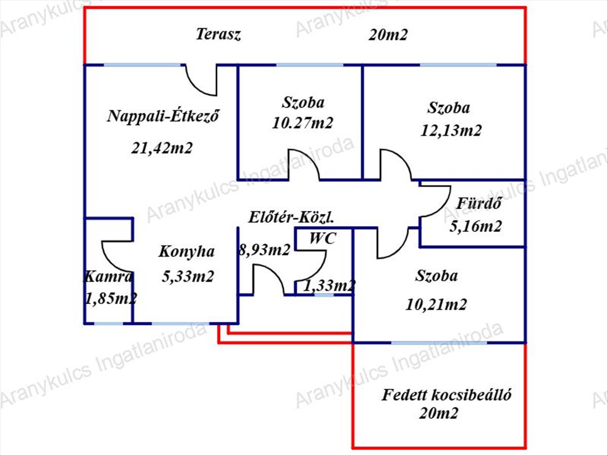A lakáshoz tartozik egy 20 m²-es fedett kocsibeálló, valamint egy 20 m²-es terasz, amely tökéletes helyszíne lehet a hétvégi pihenésnek vagy családi együttléteknek. Az ingatlanhoz előkert és hátsókert is tartozik, így a kültéri terek is kényelmesen használhatók.