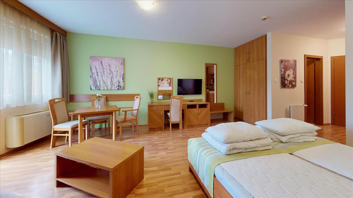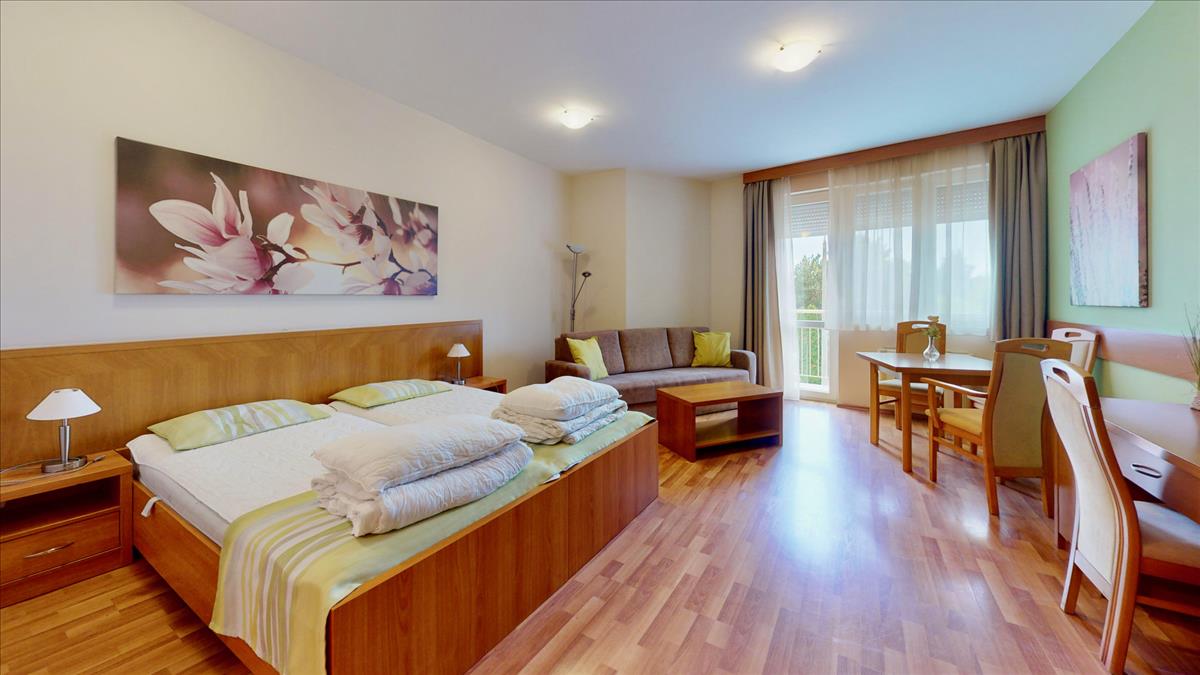 Hajdúszoboszló, gyógyfürdőtől 550 méterre, 2008-as építésű, liftes társasházban lévő, 42, 47 m2-es, nagy szobával, fürdőszobával, külön WC-vel, konyhával. Kamrával, másidik emeleti, nagy erkélyes lakás, 4 személy elhelyezésére alkalmasan, teljes szállodai felszereléssel eladó. a lakáshoz tartozik egy teremgarázs beálló, mely vásárlása kötelező 6 MFt-ért. a lakók díjmentesen használhatják a szálloda wellness részlegét (finn- és infra-szauna, gőzkabin, szabadtéri medencék). Készpénzes vevőket várunk.