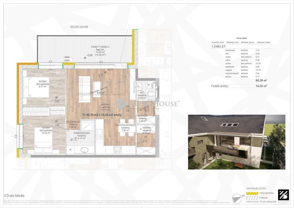 A társasház 1. emeletén eladó egy 60 nm-es, nappali + 2 szobás lakás, 14 nm terasszal.Hajdúszoboszló kedvelt, csendes, mégis könnyen megközelíthető részén, mindössze 5 lakásos, modern társasházban kínálunk eladásra már csak 3 db új építésű lakást.