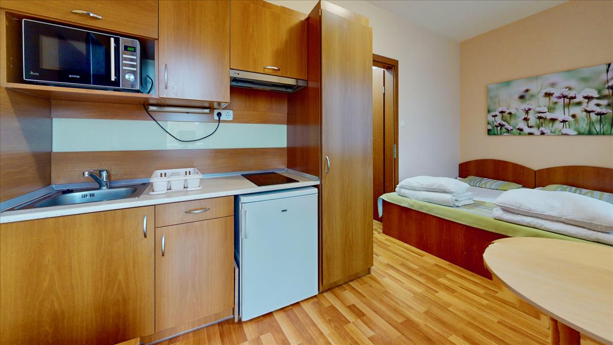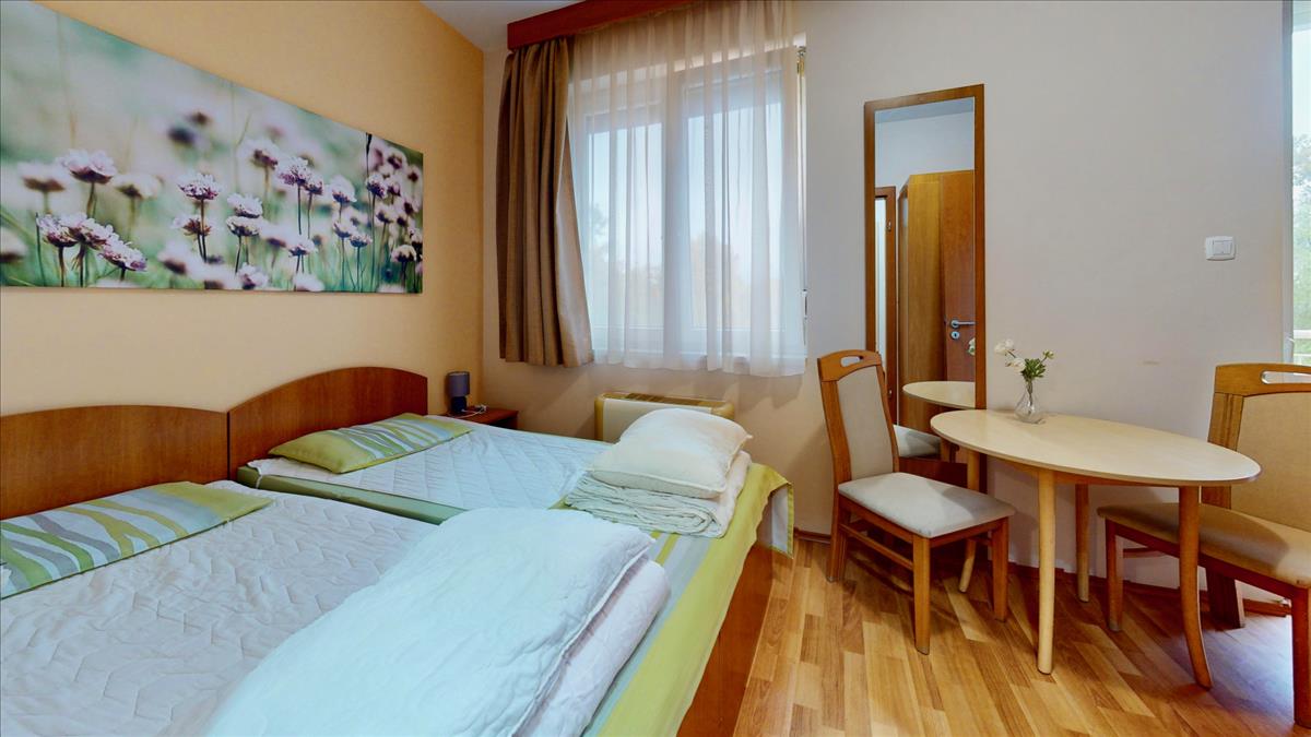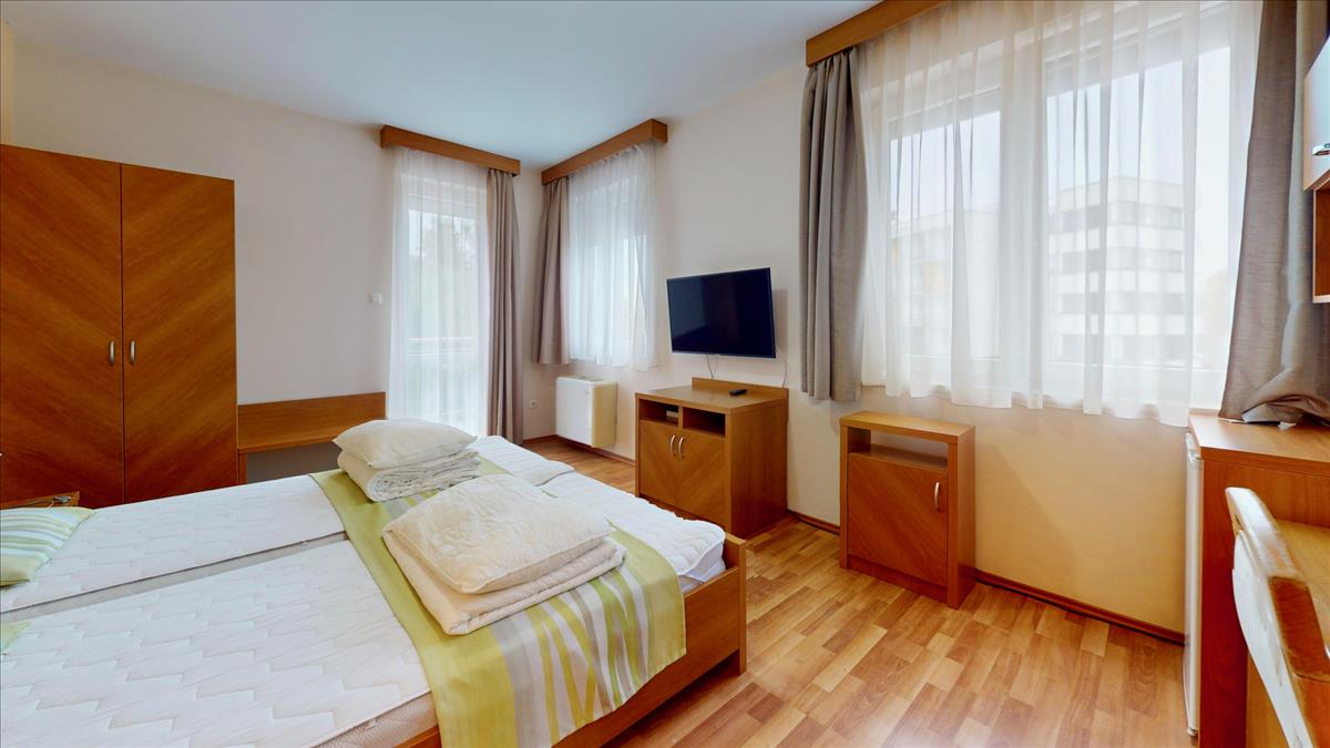 Hajdúszoboszló, gyógyfürdőtől 550 méterre, 2008-as építésű, liftes társasházban lévő, 48, 61 m2-es két különnyíló szobával, külön-külön fürdőszobával, konyhapulttal másidik emeleti, nagy erkélyes lakás, 4 személy elhelyezésére alkalmasan, teljes szállodai felszereléssel eladó. a lakáshoz tartozik egy teremgarázs beálló, mely vásárlása kötelező 6 MFt-ért. a lakók díjmentesen használhatják a szálloda wellness részlegét (finn- és infra-szauna, gőzkabin, szabadtéri medencék). Készpénzes vevőket várunk. FIX 3% lakáshitelre megvehető