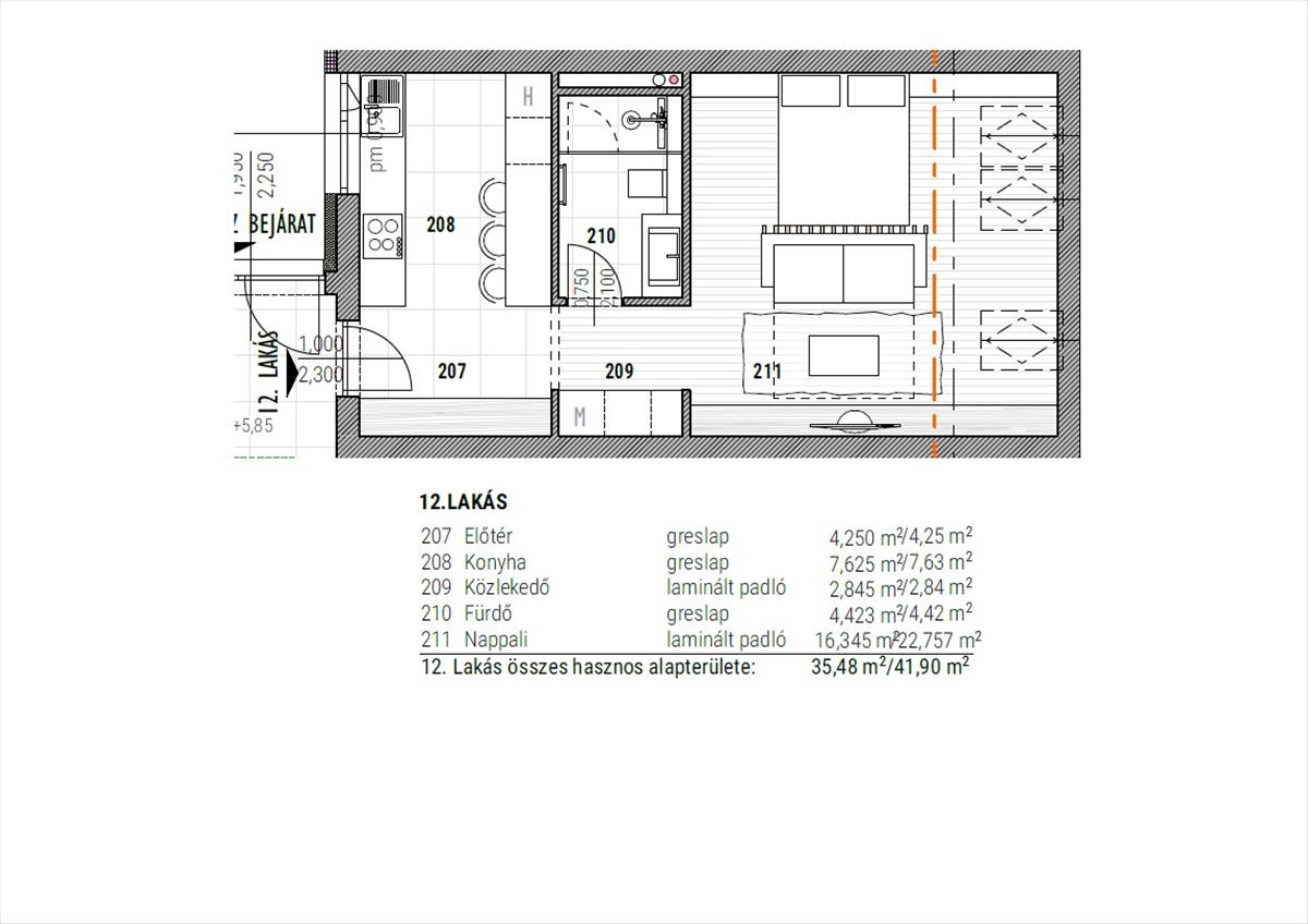 L 12-es lakás nettó 35, 48 nm( br. 41, 9 Nm) fűtéskész ára: 31 990 000 Ft